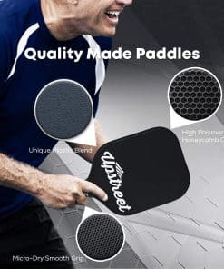 3. APROBADO POR USAPA: El set de raquetas de pickleball de Upstreet ha sido certificado por USAPA y es adecuado para torneos. Fabricamos el mejor set de raquetas de pickleball en el mercado, utilizamos materiales de alta calidad y artesanía experta. Queremos mejorar el juego de Pickleball ofreciendo una raqueta de alta calidad a un precio asequible.