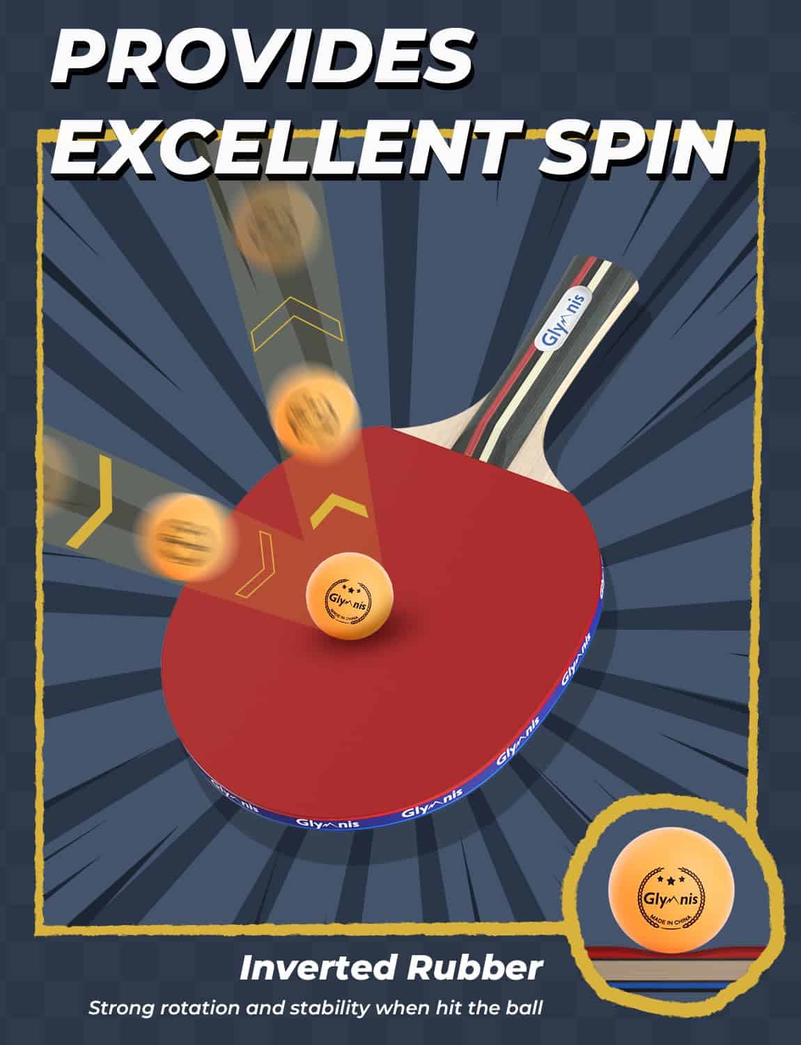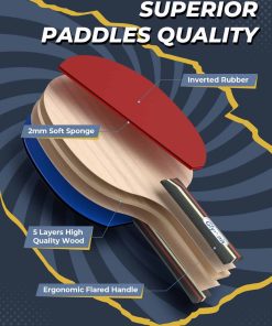 2. RAQUETAS DE PING PONG DE ALTA CALIDAD – Nuestra raqueta de ping pong está hecha de 5 capas de madera resistente a las grietas y goma. El mango ergonómico está hecho de materiales de alta calidad, que no es fácil de corroer y tiene una buena absorción del sudor. Raquetas de ping pong duraderas, tu compañero deportivo perfecto.