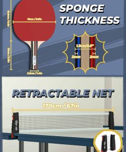 Glymnis te trae este completo set de ping pong para que puedas disfrutar de partidos en cualquier momento y lugar. Las raquetas de ping pong están fabricadas con materiales de alta calidad, con 5 capas de madera antideslizante y goma duradera, ideales tanto para jugadores avanzados como principiantes. Las pelotas de ping pong de 3 estrellas ofrecen gran flexibilidad y precisión en su trayectoria. Además, el set incluye una red retractil de fácil instalación y una bolsa de transporte para que puedas llevarlo a donde quieras. ¡Un regalo perfecto para los amantes del ping pong!