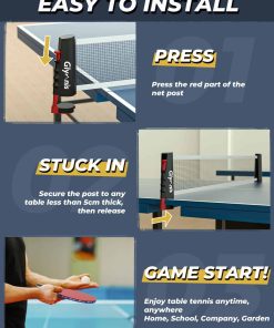 4. RED DE PING PONG DE FÁCIL INSTALACIÓN – nuestro set de raquetas de ping pong incluye una red de tenis de mesa retráctil, portátil, duradera y fácil de instalar. Solo 3 pasos: Presiona la palanca, asegúrala a cualquier mesa de menos de 5 cm de grosor, luego suéltala. La red se puede retraer hasta 170 cm.