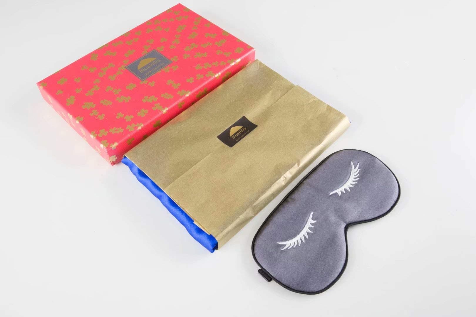 Set de regalo de lujo de seda pura en una elegante caja de regalo. Este set de regalo bellamente empaquetado contiene dos fundas de almohada de seda pura, un juego de antifaz de seda pura elegantemente envuelto en papel dorado y empaquetado en una lujosa caja de regalo. Este set es un regalo perfecto para dar a tus seres queridos en días festivos como Navidad, Día de San Valentín, Cumpleaños o Aniversarios.