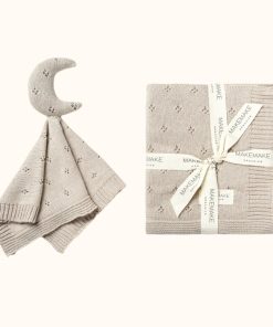 Presentamos el Set de Regalo de Manta de Bebé de Punto de Gasa de Algodón Orgánico Certificado GOTS y Peluche en Forma de Luna de MakeMake Organics, diseñado tanto para bebés varones como niñas. Este exquisito set de regalo incluye una manta de bebé tejida a mano con punto de gasa, perfectamente complementada por un peluche en forma de luna, convirtiéndolo en una adición preciada a cualquier habitación de bebé.