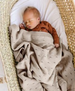 Elaborada con el mejor algodón orgánico certificado GOTS, esta manta ofrece un tacto lujoso y suave que es delicado en la piel delicada de tu bebé. Los bordes intrincados en punto de gasa agregan un encanto elegante y atemporal, mientras que el peluche en forma de luna brinda comodidad y seguridad a tu pequeño.