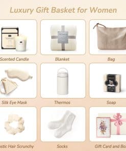 Este conjunto de regalo de relajación ofrece calidez y tranquilidad. Incluye una vela perfumada, manta suave, bolsa de hombro, antifaz de seda, taza de acero inoxidable, jabón, cinta para el cabello, calcetines acogedores y una tarjeta de regalo sincera. Una forma ideal de mostrar apoyo y cuidado. Date un capricho o a un ser querido con estos regalos acogedores para mujeres, que incluyen una manta blanca y calcetines de lana suaves con un ajuste elástico suave que no restringirá tus pies. Este conjunto de regalo es ideal para envolverse en calidez y encontrar paz durante los momentos ocupados de la vida. Ayuda a las mujeres a relajarse y descansar con una vela perfumada de campanilla calmante, jabón nutritivo de leche de cabra y una cinta para el cabello elástica suave. Esta cesta de regalo de confort está diseñada para crear un ambiente pacífico y mejorar una rutina relajante de cuidado personal en casa. Disfruta de tus bebidas a la temperatura ideal con la taza de acero inoxidable beige de 16.9 oz, diseñada para durabilidad y estilo. Combinada con una bolsa de hombro de moda, estos regalos para mujeres te ayudan a organizar tus esenciales de viaje sin esfuerzo mientras añades un toque de elegancia a tu rutina diaria. Consiente a esa persona especial con un lujoso juego de regalo de spa, ideal para mujeres de todas las edades, ya sea para tu hija, hermana, novia, esposa, mamá o abuela. El set incluye una tarjeta plegable para un mensaje personalizado. Ya sea para recuperación postparto, regalo de cumpleaños, Día de San Valentín, regalo del Día de la Madre, o simplemente para mostrar aprecio, esta pensativa cesta de regalo de spa seguramente la hará sonreír y te mantendrá en su corazón