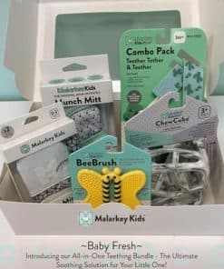 Introduciendo la solución definitiva para la dentición y el alivio de tu pequeño – ¡el Set de Regalo Malarkey Kids de 5 Piezas! Este completo conjunto de felicidad para bebés incluye todo lo que necesitas para mantener a tu bebé feliz y cómodo durante esas desafiantes etapas de la dentición.