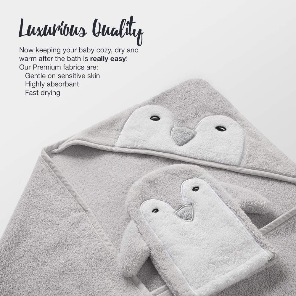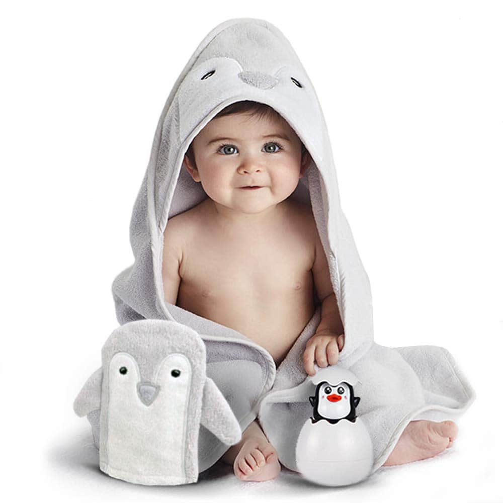 ¿Estás buscando el regalo perfecto para el próximo baby shower de tu amiga Este útil y lindo presente será apreciado por cada mamá o padre y su dulce bebé. Es neutro, por lo que es adecuado tanto para niño como niña, desde recién nacidos hasta niños pequeños. Este set especial de unisex trae los productos esenciales para tu tiempo de baño. Mezcla de diversión y cuidado en la bañera de tu bebé. Puedes disfrutar de jugar extra con tu bebé en la bañera con un lindo juguete de pingüino squirting y un suave paño de lavado de manopla y estar seguro de la salud de tu bebé. Todos sabemos que la piel del bebé es delicada y el momento del baño es el más indicado para cuidarla. Con nuestras toallas para bebés con capucha hechas del mejor material orgánico de calidad, la piel de tu bebé estará totalmente protegida. Esta tela acogedora con un grosor de 500 gsm es ideal para la piel de tu bebé. Dale a tu bebé lo que se merece. Esta toalla de acogedor fabricada con tela suave y sedosa mantendrá alejado a tu bebé de cualquier frío. Es adecuada para bebés de 0-3 años. Hecha de un material de alta gama de lujo que absorbe más que otros, manteniendo la piel de tu bebé seca después del baño. Como madres, es un imprescindible en tus registros. En las primeras impresiones, lo amarás. Este es el must have para la higiene del bebé.