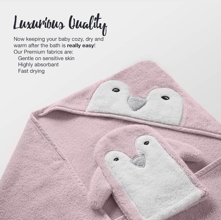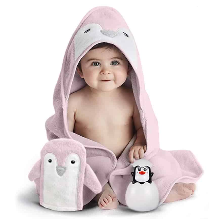 Perfecto regalo de baby shower, este encantador y útil set de baño es ideal para bebés. Diseñado específicamente para niñas, es perfecto para recién nacidos, bebés, niños pequeños y niños de hasta 3 años. Este set de baño unisex incluye todos los elementos esenciales para un baño divertido y cuidadoso. Incluye un lindo juguete de pingüino chorro, una suave manopla de tela y una toalla con capucha hecha de lujoso bambú viscosa. Disfruta jugando con tu bebé en la bañera mientras te aseguras de que su piel esté protegida y cuidada. Entendemos que la piel de los bebés es delicada. Nuestra toalla con capucha está hecha de la mejor calidad de bambú viscosa orgánica, proporcionando protección total para la piel de tu bebé. La tela acogedora y gruesa de 500 GSM es ideal para pieles sensibles, asegurando que tu bebé se sienta cómodo y mimado. Dale a tu bebé el calor y la comodidad que se merece. Esta toalla suave como la seda absorbe más humedad que las toallas estándar, manteniendo la piel de tu bebé seca y caliente después del baño. El material de alta gama garantiza que tu bebé se mantenga acogedor y protegido del frío. Como bono especial, hemos incluido un eBook gratuito para ayudarte con consejos de baño para bebés y consejos de cuidado de la piel. Sabemos que ser padre puede ser todo un reto, así que te cubrimos con información importante para hacer que el baño sea más fácil y agradable. Por qué elegirnos: CALIDAD PREMIUM: Hecho de lujoso bambú viscosa, asegurando la más alta calidad y comodidad para tu bebé. REGALO VERSÁTIL: Perfecto para baby showers, este set es adecuado tanto para niños como para niñas, lo que lo convierte en una elección versátil. CUIDADO ESENCIAL: Incluye todos los elementos esenciales para el baño, asegurando que la piel de tu bebé esté bien cuidada. BONO DE EBOOK: Obtén consejos útiles y consejos sobre el cuidado de la piel y el baño para bebés con nuestro eBook gratuito.