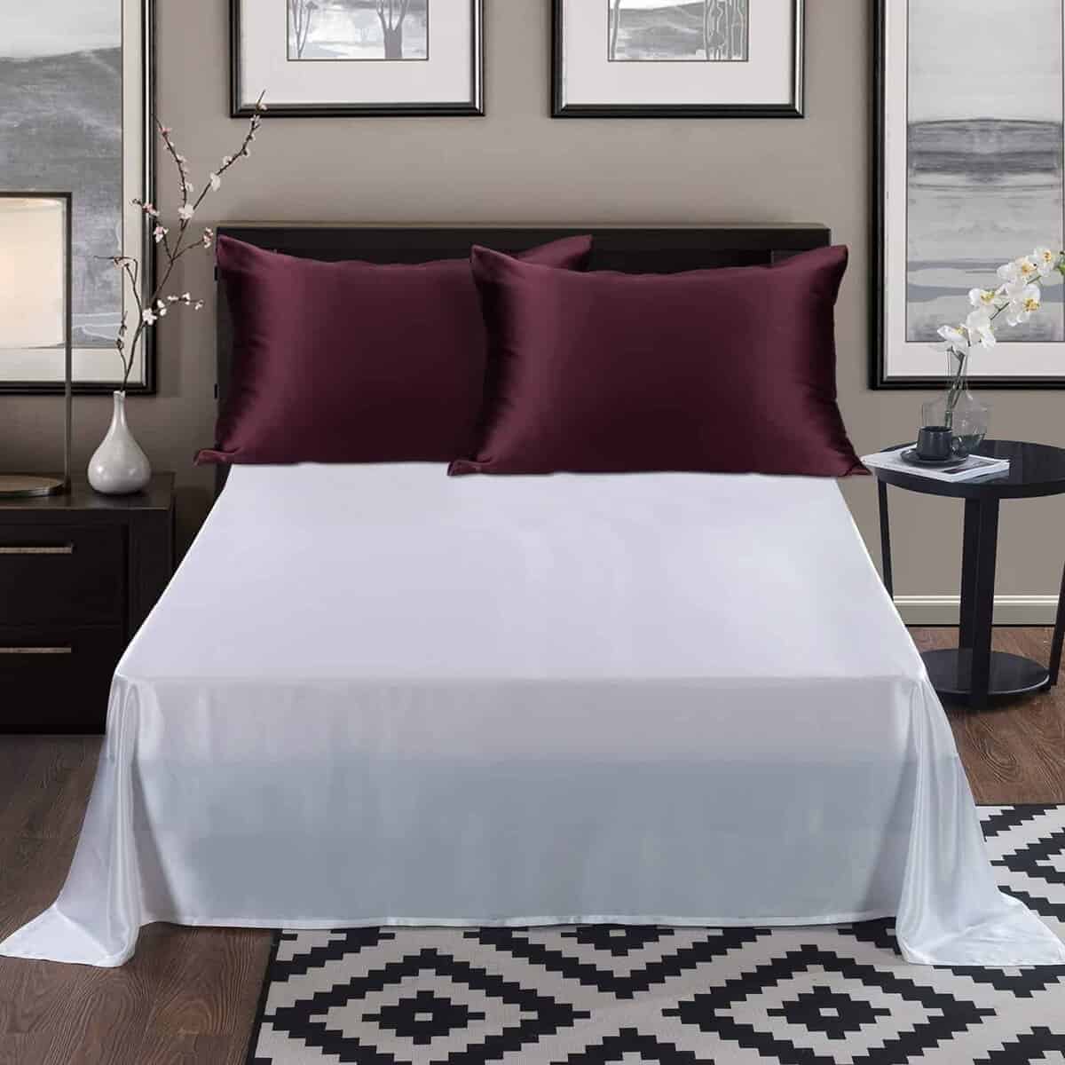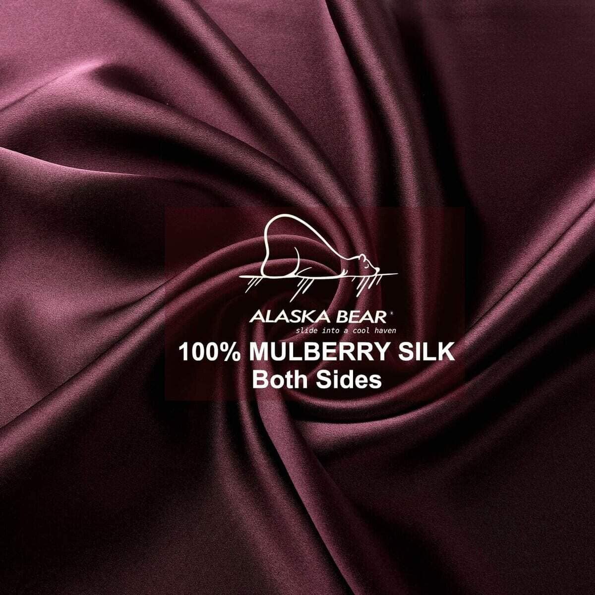 Set de regalo Queen Silk Pillowcase y Scrunchie de Seda de Color Aleatorio ALASKA BEAR. Este set incluye una funda de almohada de seda y un scrunchie de seda suave, ambos en un hermoso color rojo borgoña. La funda de almohada está fabricada con un 100% de Seda de Morera auténtica, de Grado 6A y 19 Momme, lo que la convierte en una opción hipoalergénica y suave para tu piel y cabello. La seda utilizada es orgánica, con un bajo impacto de carbono y ayuda a mantener la frescura y suavidad al tacto. Los dermatólogos recomiendan las almohadas de seda suave para proteger la piel y el cabello, evitando las arrugas y la sequedad. La funda de almohada Queen Size se ajusta a la mayoría de las almohadas tamaño queen y cuenta con una cremallera oculta para evitar que la almohada se salga. Además, está certificada por OEKO-TEX, lo que garantiza que está libre de sustancias tóxicas. Este set es perfecto para cuidar de tu piel y cabello mientras duermes, ¡sé como los osos en Alaska y cuida de tu pelaje mientras hibernas con este lujoso set de seda!