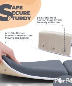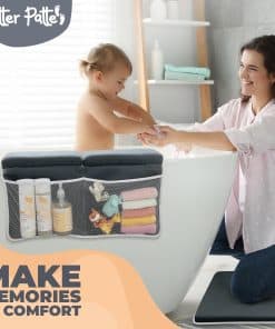 ¡Haz recuerdos cómodos con nuestro set de rodillera y almohadilla para los codos para bebé en la bañera! El almohadilla para las rodillas de baño es de neopreno y espuma para una comodidad máxima. Esta almohadilla para las rodillas es más larga y ancha que la mayoría, con dos bolsillos delanteros de gran capacidad que ofrecen espacio suficiente para almacenar lo esencial de baño para bebés, como champús, jabones, juguetes y más. Dos bolsillos traseros ofrecen un organizador de juguetes de baño para que tu hijo pueda jugar. Nuestro juego de rodillera para bebé y almohadilla para los codos mantendrá todo lo que necesitas al alcance de tu mano. La espalda reforzada de nuestro set de baño para bebé cuenta con 6 ventosas fuertes que proporcionan una fijación segura a la superficie de la bañera. Las almohadillas tienen un respaldo antideslizante que permite que se mantengan en su lugar, brindando estabilidad y tranquilidad durante el baño. El acolchado grueso, de espuma y fácil de limpiar ofrece un soporte máximo para los codos y las rodillas al bañar al bebé. La almohadilla para los codos de 1.5″ y la almohadilla para las rodillas de 1.75″ están hechas de espuma y están cubiertas con neopreno de secado rápido y resistente al agua que puede secarse al aire después de cada uso. Cuando sea necesario, nuestra rodillera y almohadilla para los codos pueden lavarse a máquina en ciclo delicado y secarse al aire. ¡Estas esenciales de baño para bebés son el regalo perfecto para un baby shower! Nuestros elementos esenciales para el baño del bebé son el compañero perfecto para los padres que buscan mejorar la comodidad y diversión de la hora del baño con sus pequeños.