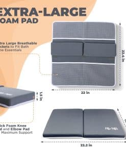 1. ¡Crea recuerdos con comodidad! Obtén una comodidad excepcional para tus rodillas y codos con nuestro set de rodillera y almohadilla para los codos cuando bañas a un niño/bebé en la bañera. Este juego de almohadilla para rodilla garantiza una experiencia de baño sin dolor y placentera para que puedas crear recuerdos con los pequeños humanos que más amas. Con nuestra almohadilla para los codos y almohadilla para las rodillas al bañar al bebé, puedes interactuar cómodamente con tu pequeño, sin irritaciones ni molestias.