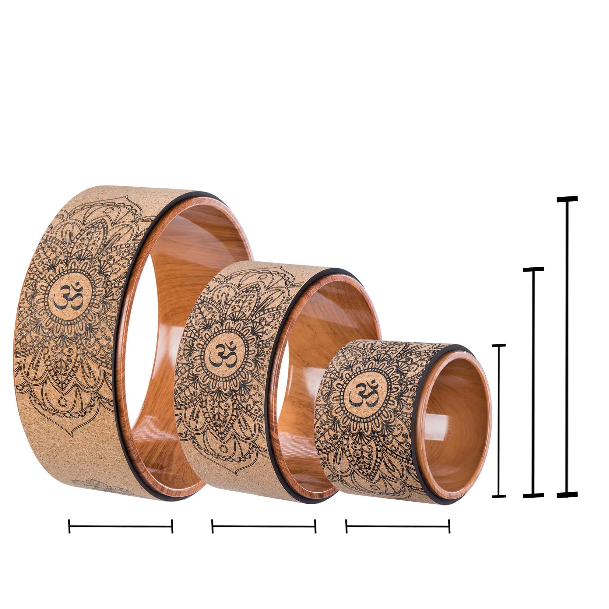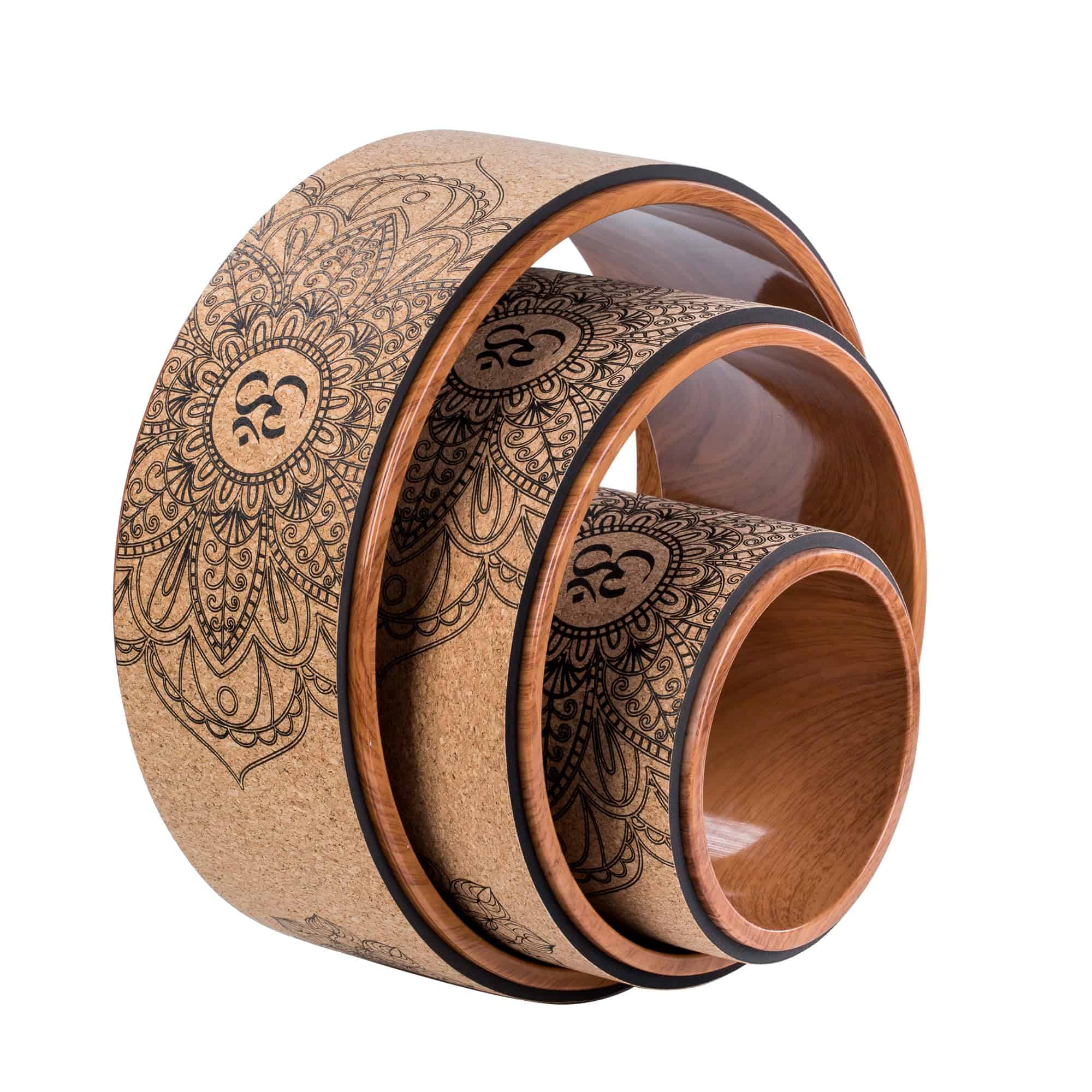 3. Este set de ruedas de yoga de corcho tiene 3 tamaños (6″, 10″, 13″) para soportar tus diferentes posturas.