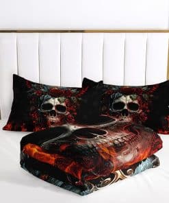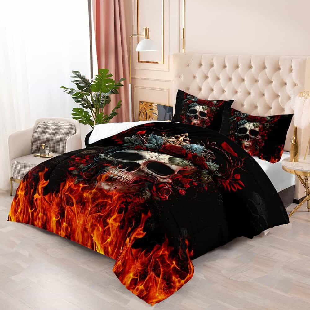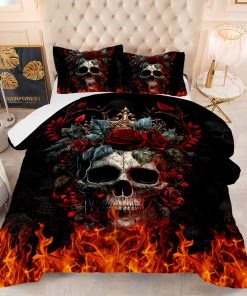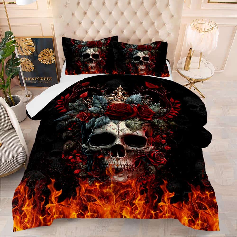 Set de Ropa de Cama 3D Skull de Rosa de Fuego para Niños,