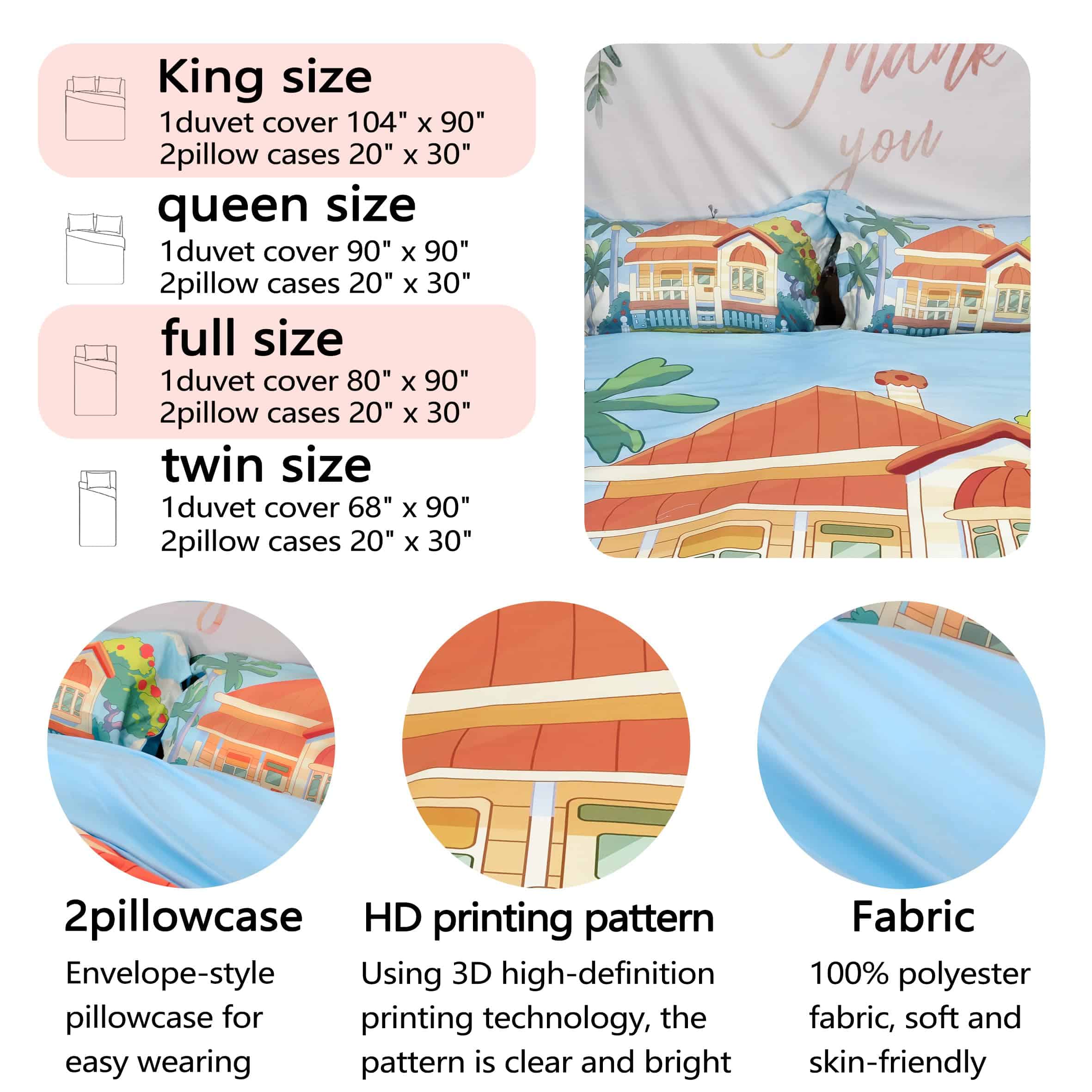 1. Tamaño gemelo: Funda Nórdica 90″X68″; Funda de Almohada 20″ x 30″.