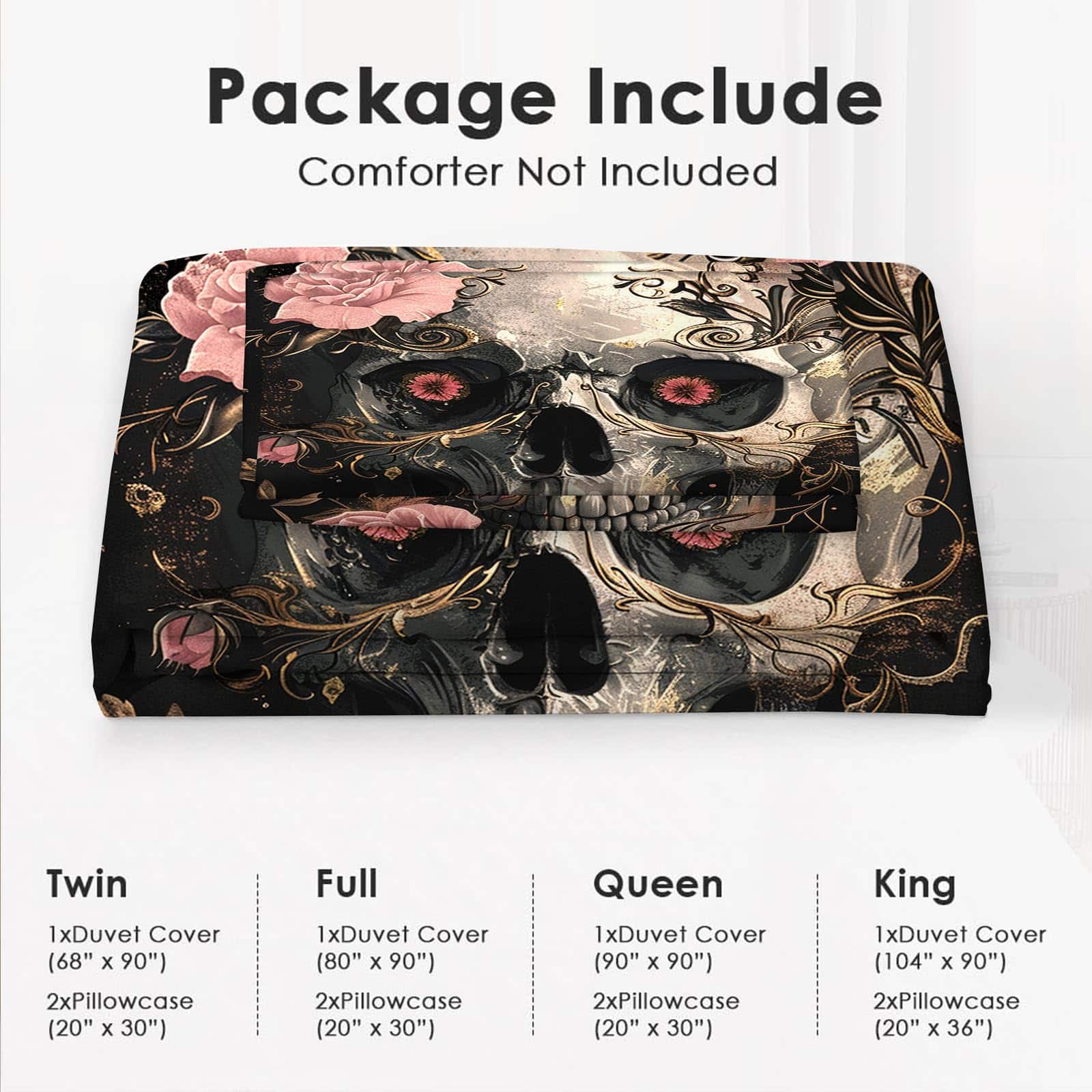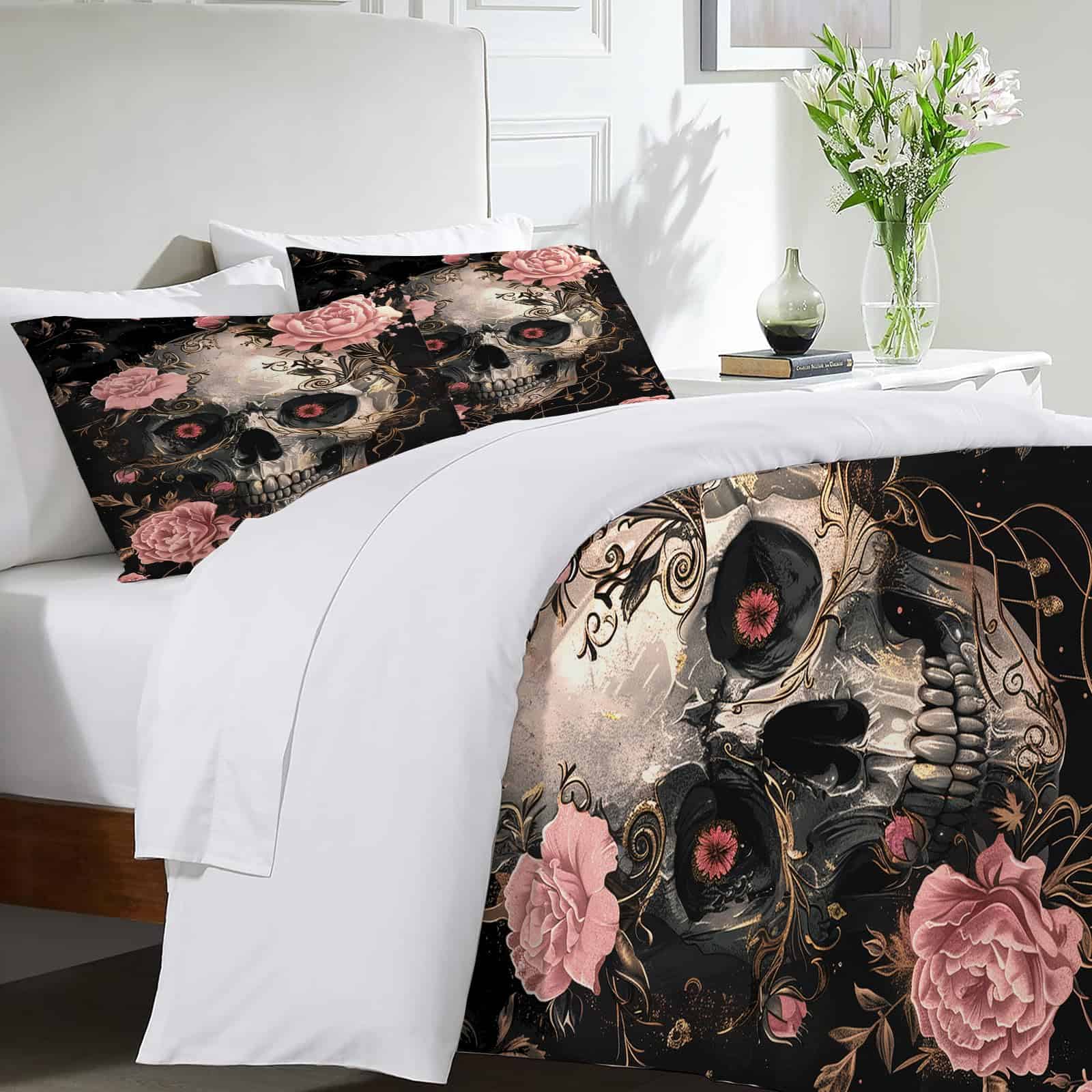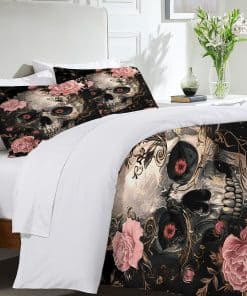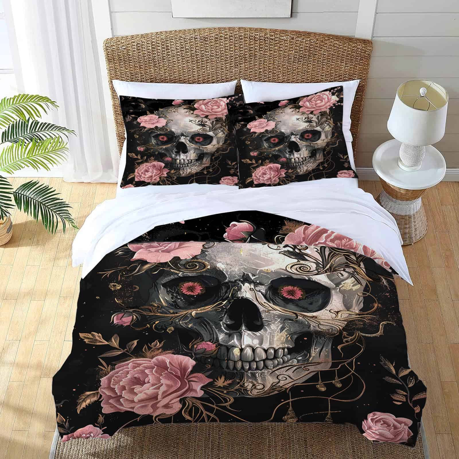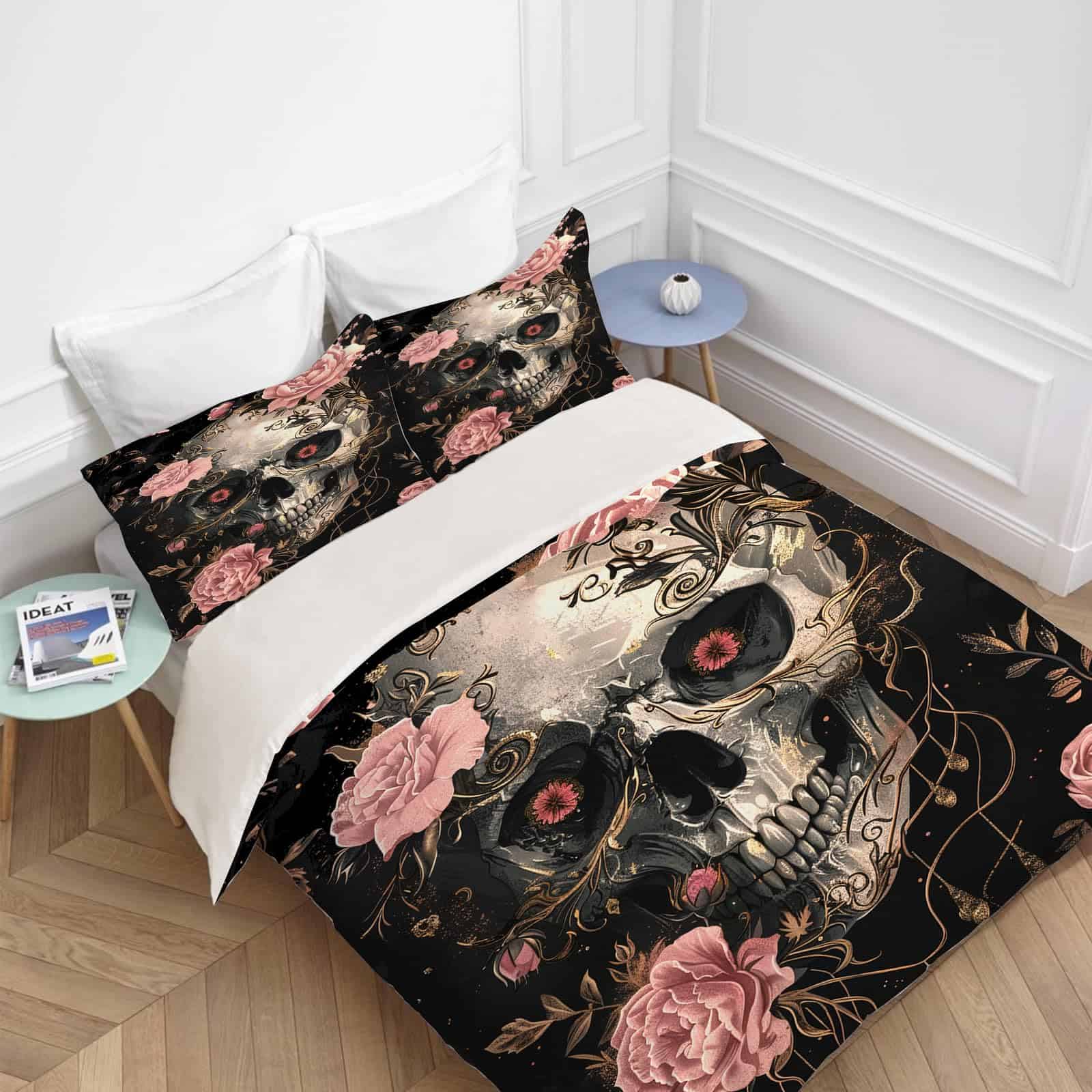 Set de Ropa de Cama con Calaveras y Rosas Funda nórdica
