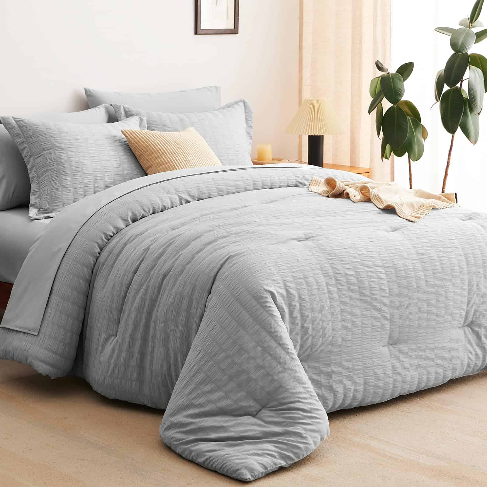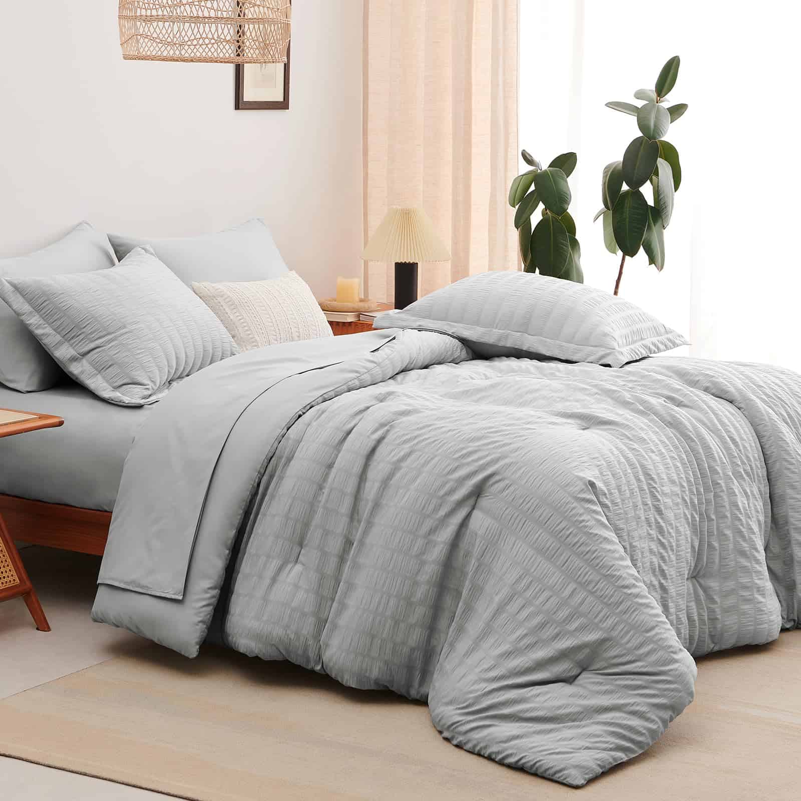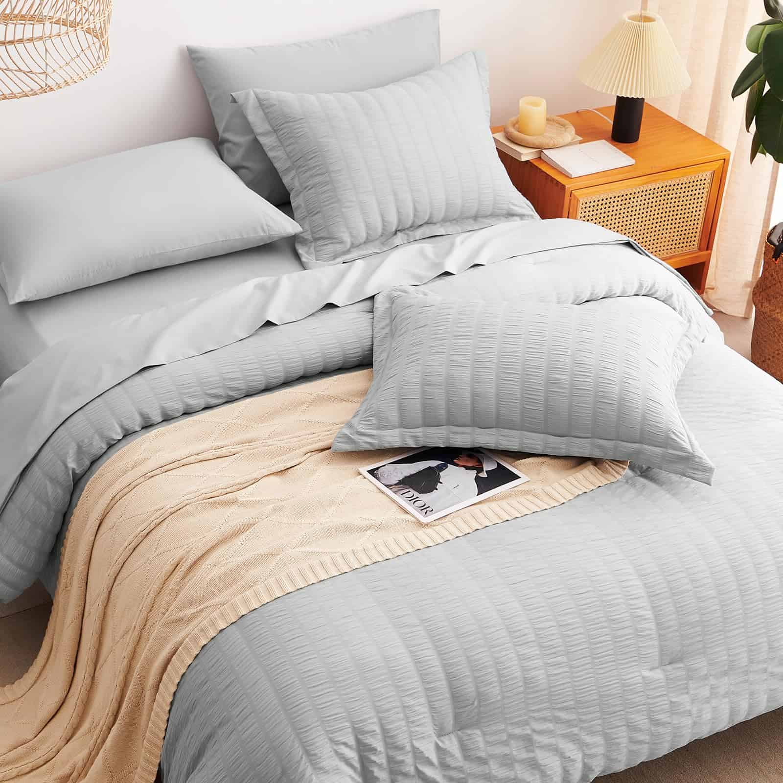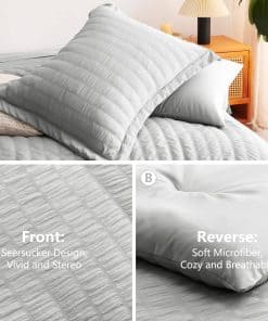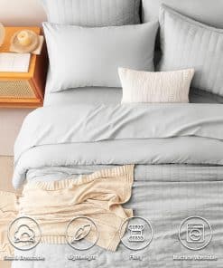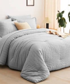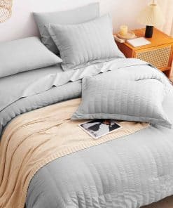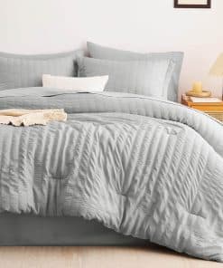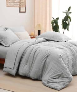 El Juego de Ropa de Cama CozyLux Queen en Gris Claro con Textura de Seersucker es la elección perfecta para aquellos que buscan calidez y comodidad durante todo el año. Con un relleno de microfibra en el edredón que proporciona una calidez excepcional y acogedora, este conjunto de 7 piezas es ideal para disfrutar de noches de sueño reconfortantes. La sábana ajustable con bolsillo profundo se adapta a colchones de hasta 14″ de profundidad y garantiza un ajuste antideslizante para una mayor comodidad. Los tonos suaves de gris claro agregan un toque de color elegante y simplificado a la habitación. Además, la facilidad de cuidado es un beneficio adicional, ya que estos juegos de ropa de cama son lavables a máquina, lo que ahorra tiempo y energía. La durabilidad del conjunto se destaca por la costura sólida en el edredón, que evita la agrupación y crea un edredón ligero y acogedor. En resumen, el Juego de Ropa de Cama CozyLux Queen en Gris Claro con Textura de Seersucker combina diseño elaborado con comodidad excepcional, ofreciendo una experiencia de sueño incomparable para ti y tu familia.