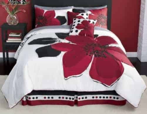 Set de Ropa de Cama Floral en Tonos Rojo, Negro y Blanco de