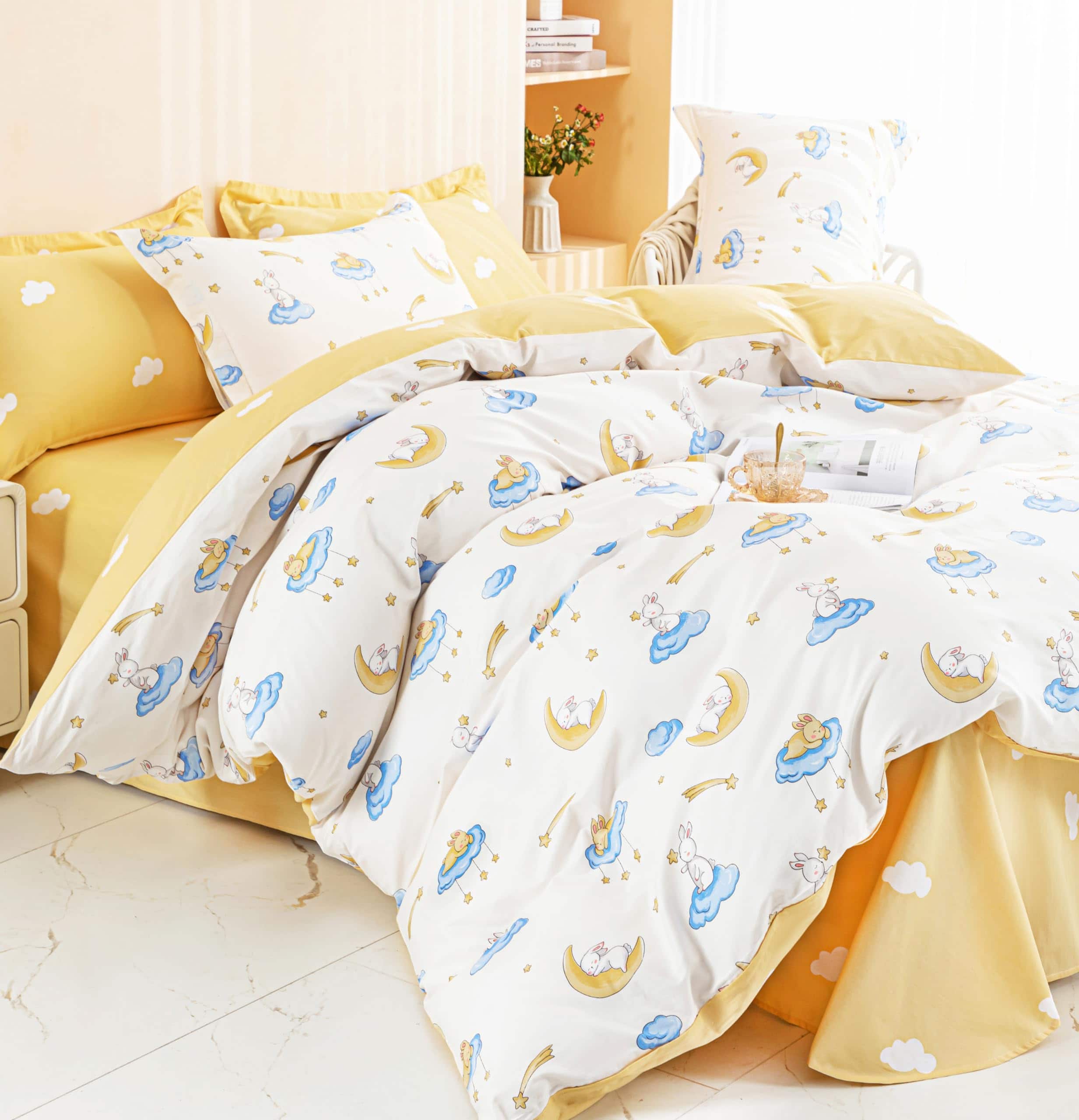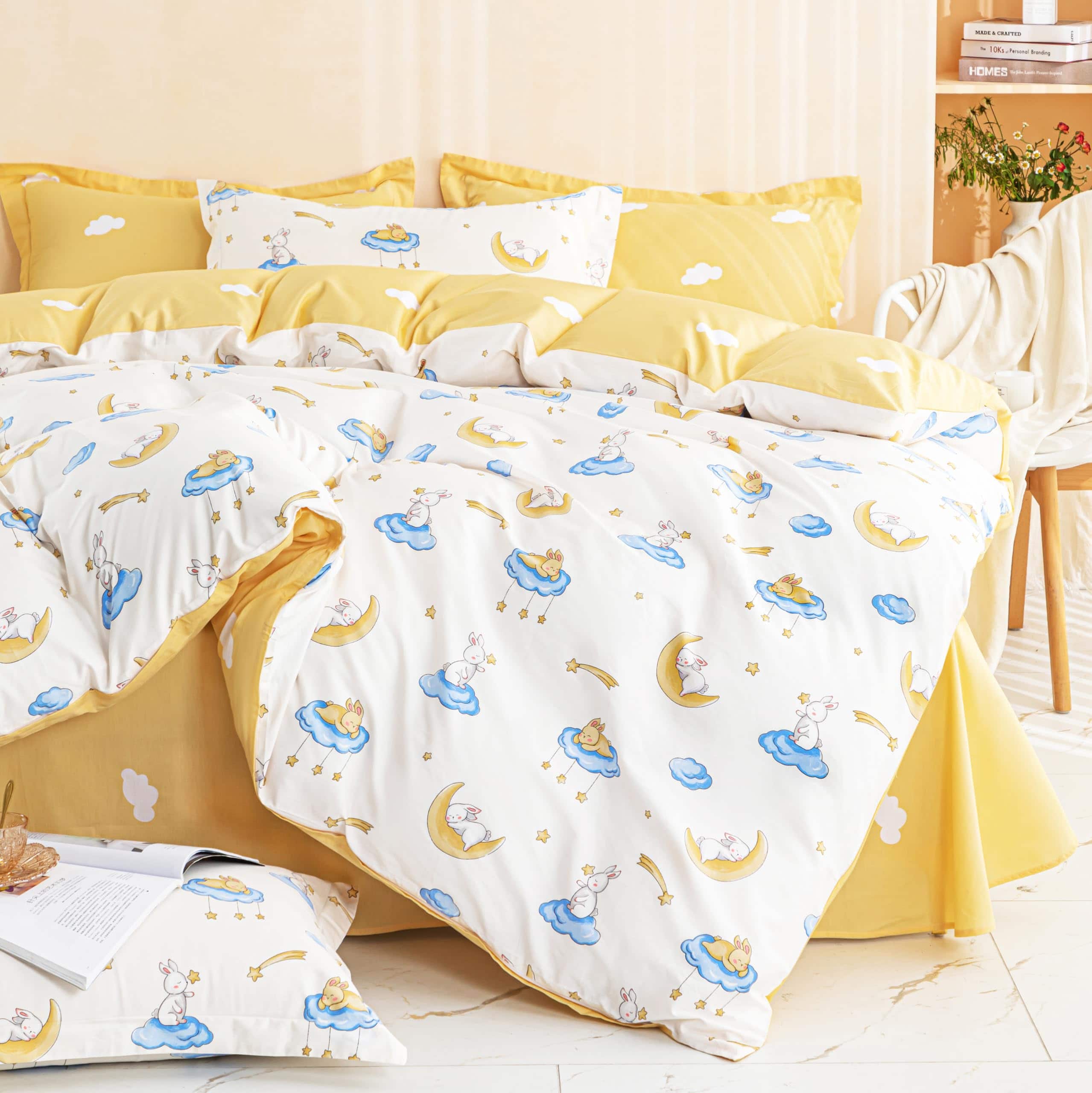 Set de Ropa de Cama MEJU Rabbit Moon Star Cloud con Conejo