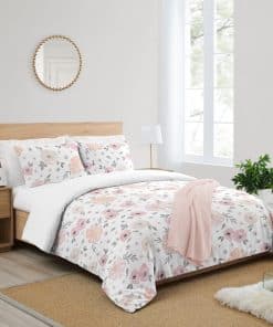 Este set de cama incluye un exclusivo estampado floral acuarela pintado a mano sobre microfibra cepillada. Hecho de microfibra cepillada, es lavable a máquina. Combina con accesorios a juego como cortinas, cestas para ropa, cortinas de baño y cojines.