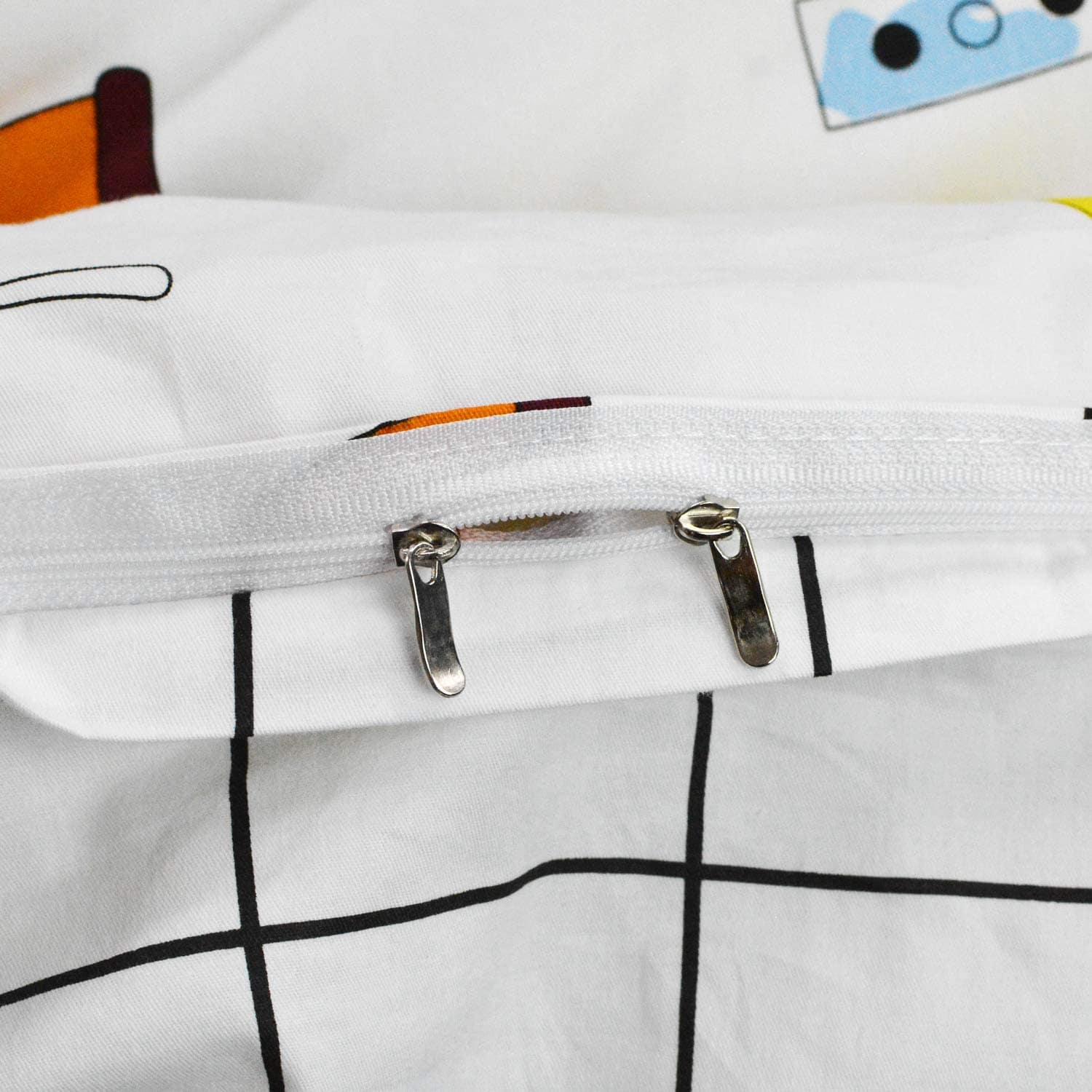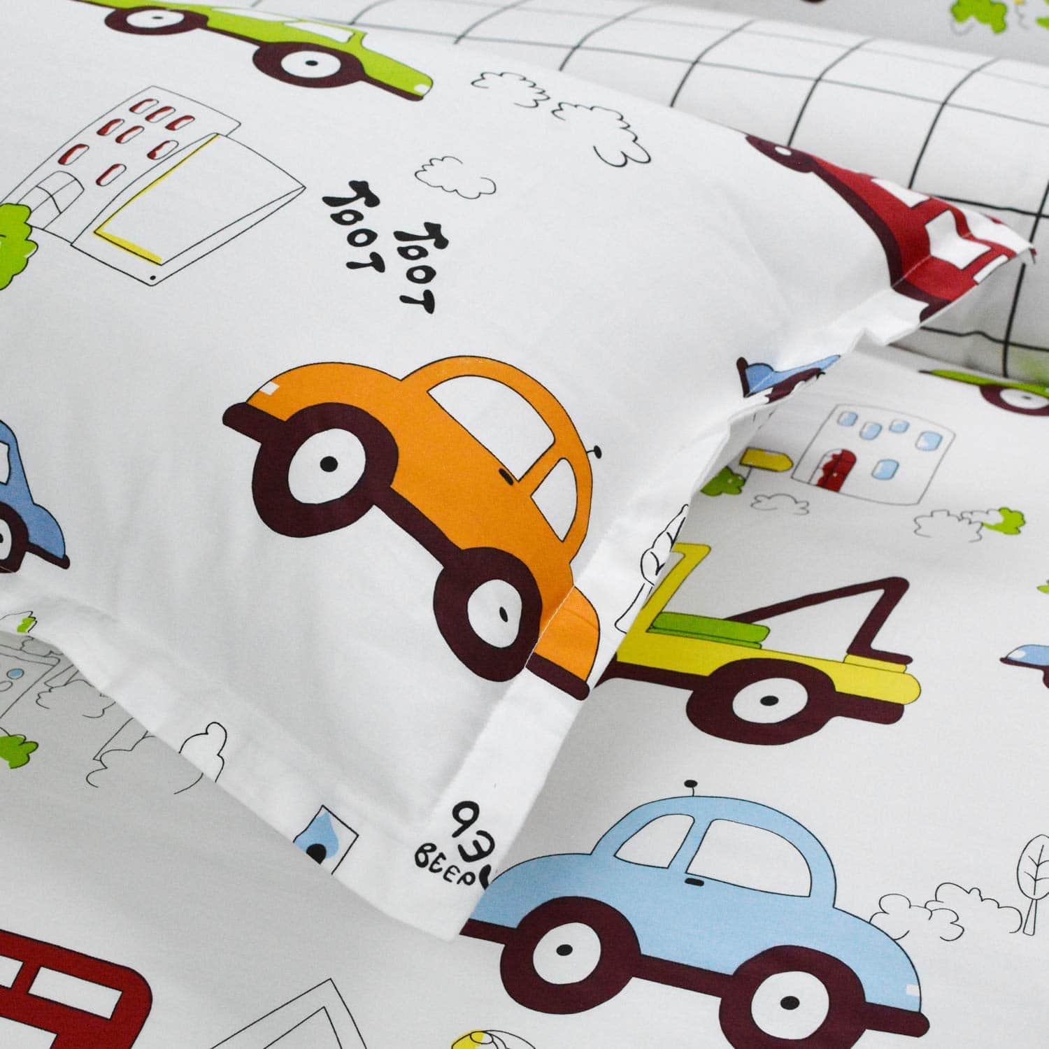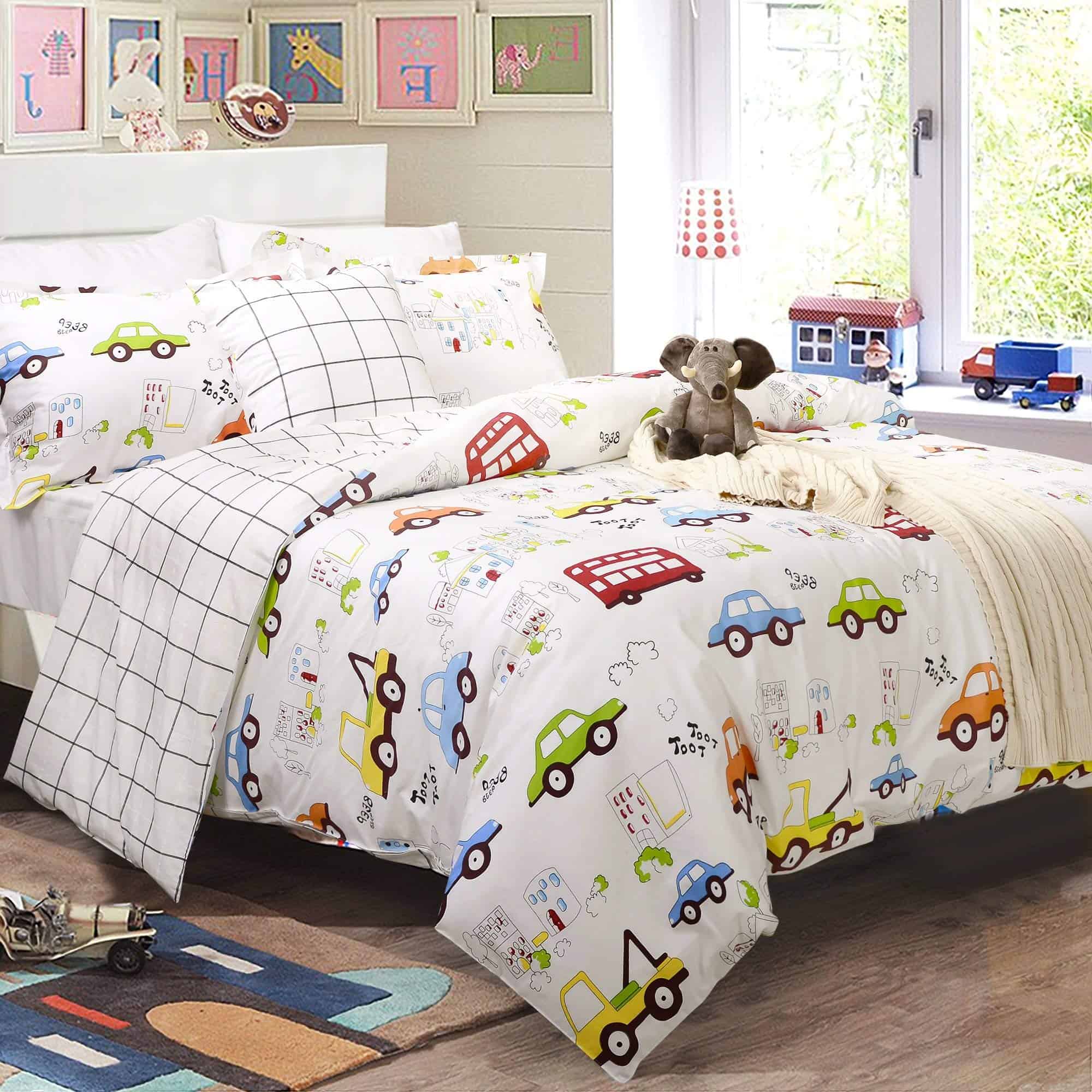 Este set de ropa de cama para niños está diseñado con coches y camiones en un divertido estampado de dibujos animados. Fabricado con 100% algodón natural, garantiza un tacto suave y transpirable para la piel de tus pequeños. El juego incluye una funda nórdica con cierre de cremallera y lazos en las esquinas, junto con dos fundas de almohada tamaño estándar. Es duradero y fácil de mantener, lavable a máquina en frío y secado a baja temperatura. Agrega un toque divertido y funcional a la habitación de tus hijos con este adorable set de ropa de cama.