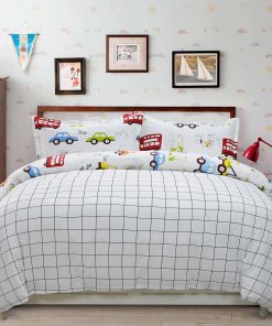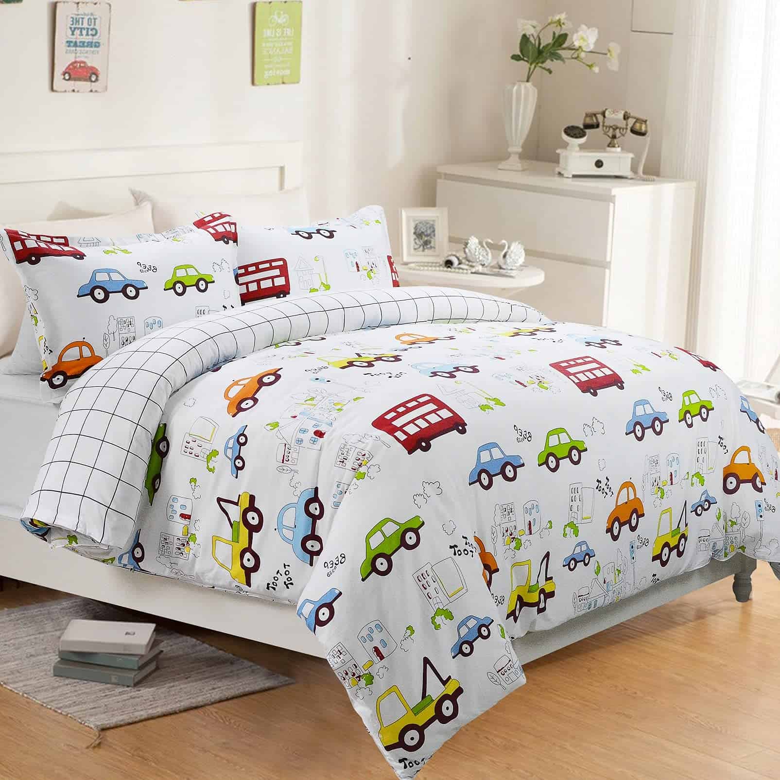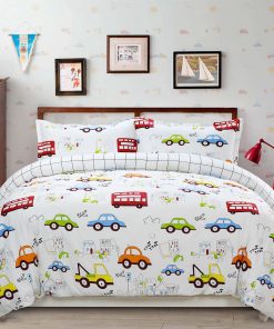 Esta funda de edredón para niños de la marca Brandream ofrece una combinación perfecta de suavidad y durabilidad. Hecha de 100% algodón de alta calidad, esta funda de edredón tiene un tacto suave y fresco que es ideal para una noche de sueño reparador. El juego incluye una funda de edredón con cierre de cremallera y lazos en las esquinas, junto con dos fundas de almohada estándar a juego. Esta funda de edredón es lavable a máquina en frío con ciclo suave y se seca a baja temperatura, manteniendo su calidad duradera sin decoloración ni formación de bolitas. El diseño con estampado de autos y vehículos CARTOON hace que esta funda de edredón sea tanto funcional como decorativa, perfecta para cualquier habitación de niños amantes de los autos.