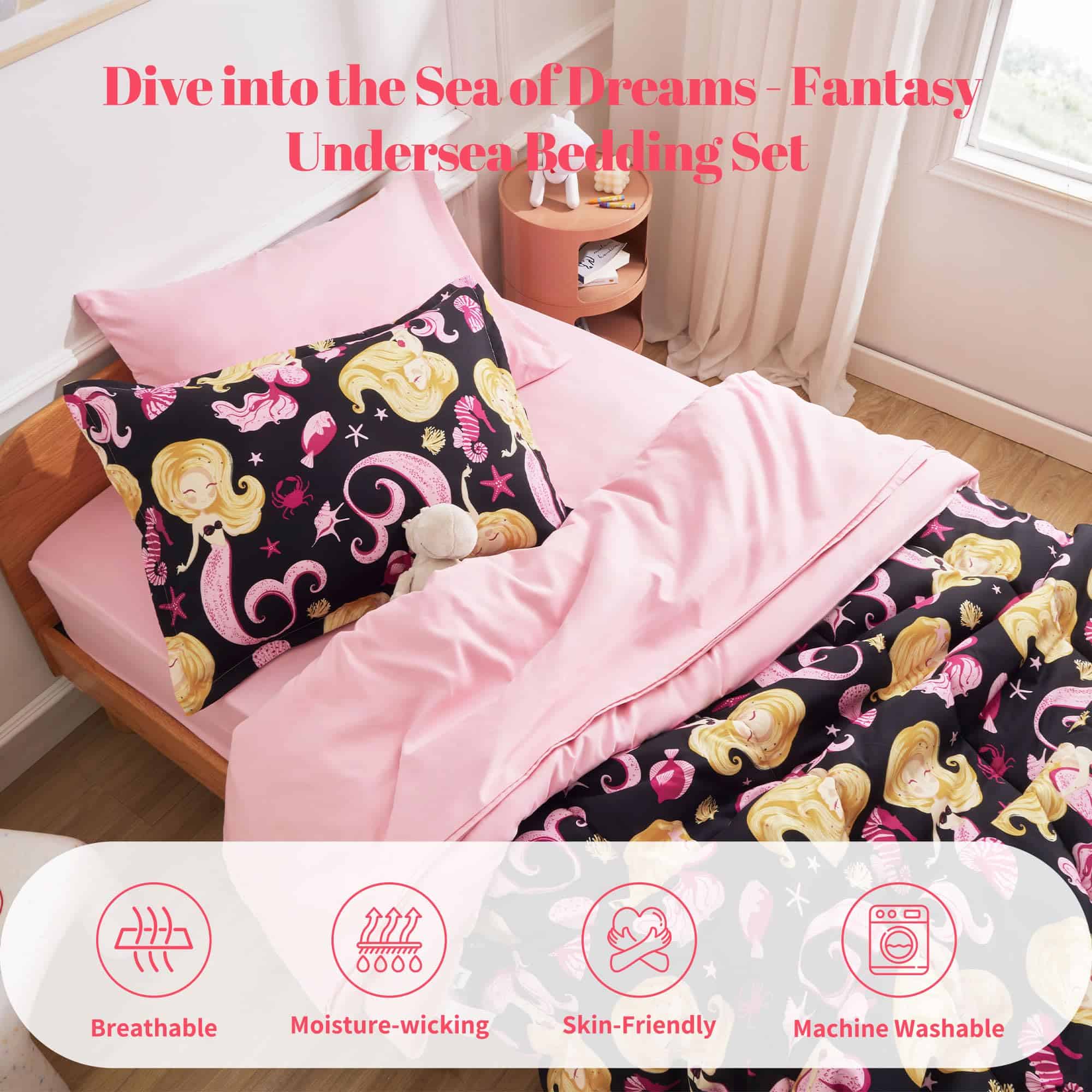 3. REGALO PERFECTO – Un regalo que promete sueños encantadores, nuestro set de edredón es perfecto para niñas. Permíteles dormir en medio de las maravillas de un mundo submarino mágico, asegurando un sueño tranquilo y alegre. Versátil para la escuela, el hogar o los viajes, esta colcha ligera y portátil combina comodidad y conveniencia.