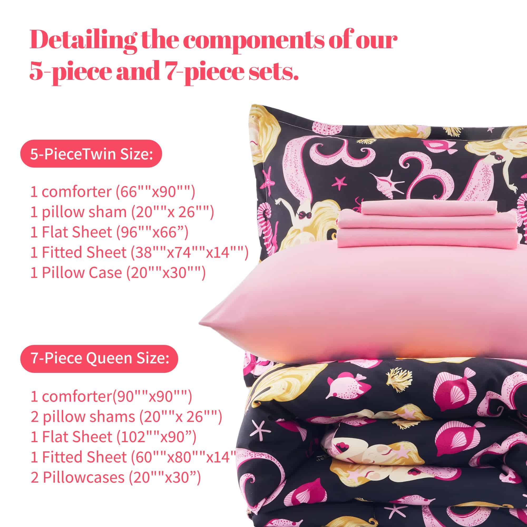 5. CAMA EN UNA BOLSA – Sumérgete en un sueño profundo en el mar con nuestro set de tamaño Twin, que incluye 1 edredón (66″x90″), 1 funda de almohada (20″x26″), 1 sábana plana (96″x66″), 1 sábana ajustable (38″x74″+14″), y 1 funda de almohada (20″x30″).