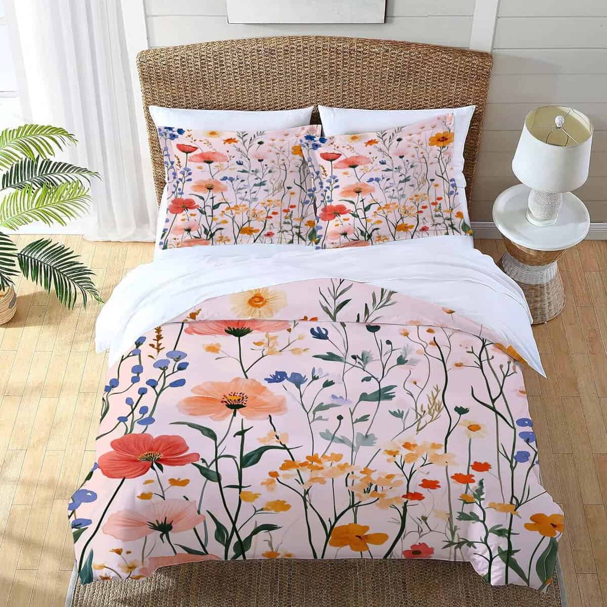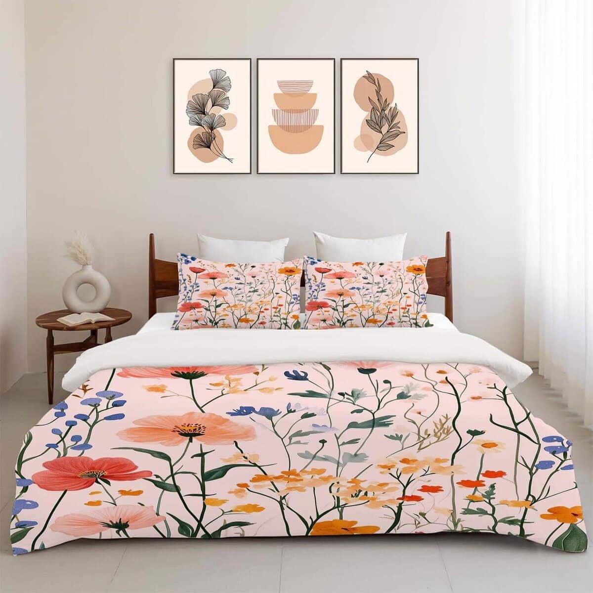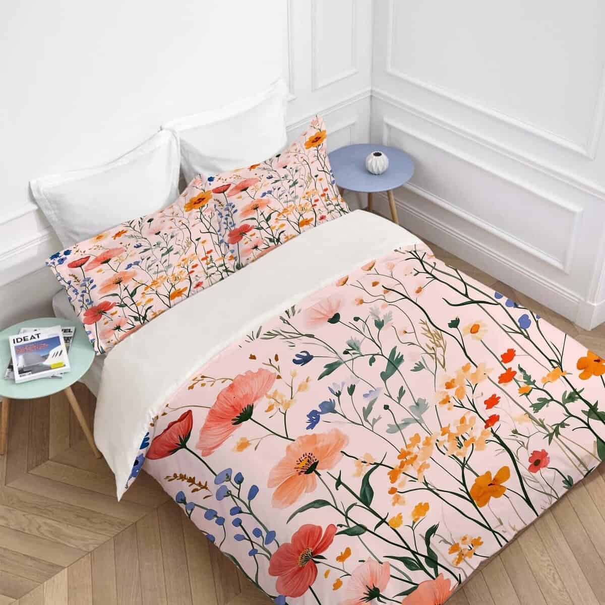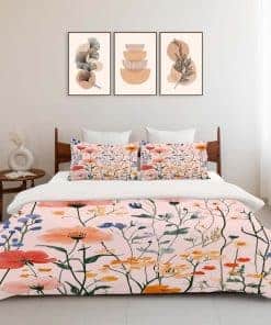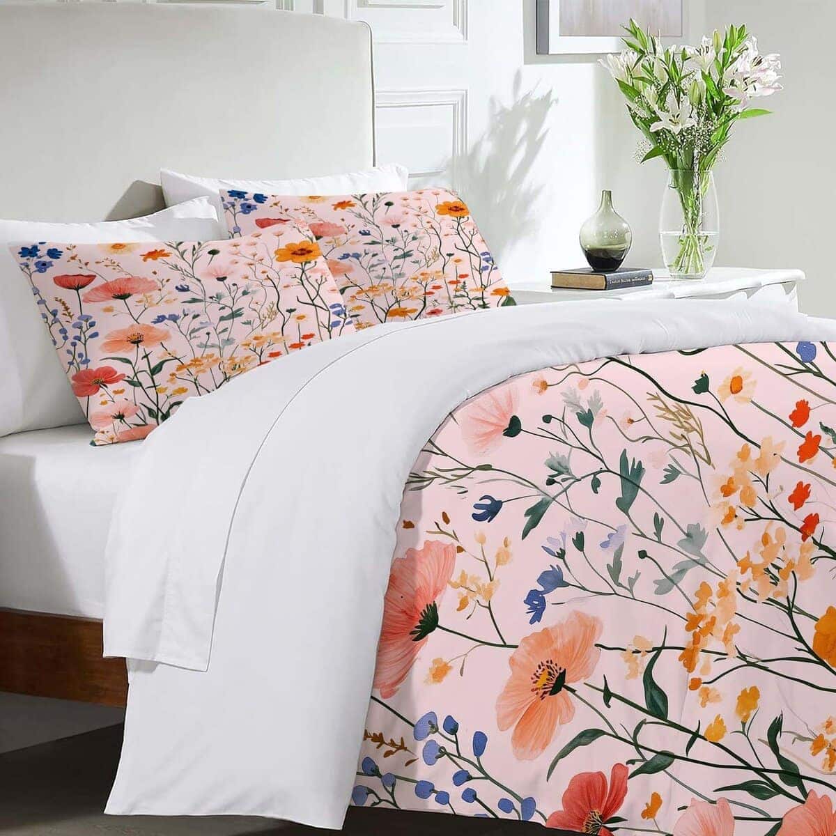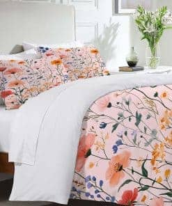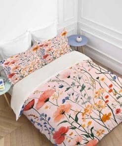 Set de Ropa de Cama Reina Floral Hojas Rosa Decoración para