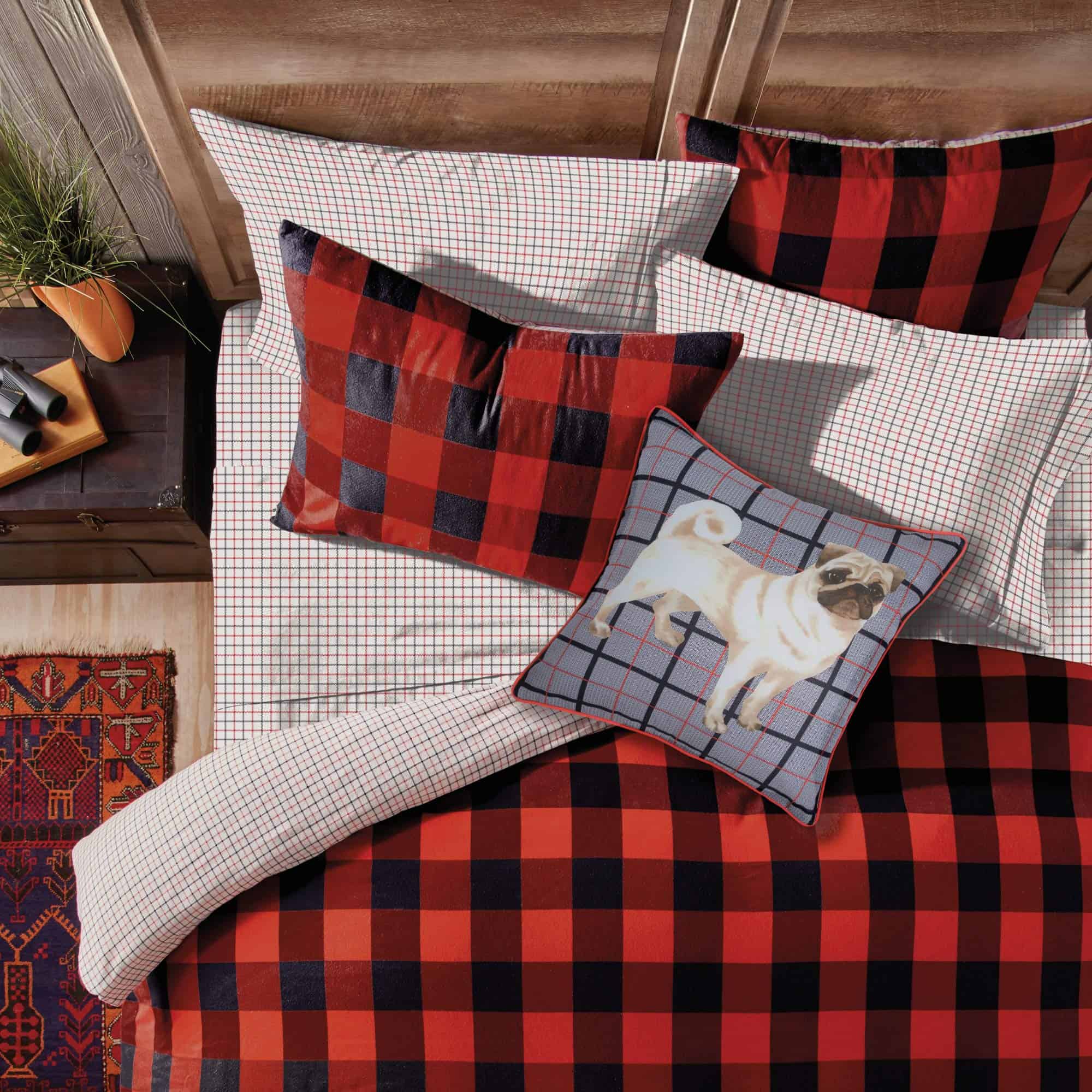 ¡Cuadros de búfalo! ¡Noches cálidas de sueño! El set de edredón de cuadros de búfalo G.H. Bass es todo lo que necesitas para una fría noche de cabaña. Esta franela de algodón a cuadros rojos y negros es el conjunto de ropa de cama perfecto para aquellos leñadores con su elegante patrón y cálida construcción. Los sets están disponibles en tamaño individual, completo/queen y king. El set de edredón individual incluye: un edredón de 63 x 86 pulgadas, una funda de almohada de 20 x 26 pulgadas. El set de edredón completo/queen incluye: un edredón de 88 x 88 pulgadas, dos fundas de almohada de 20 x 26 pulgadas. El set de edredón king incluye: un edredón de 104 x 88 pulgadas, dos fundas de almohada de 20 x 36 pulgadas.