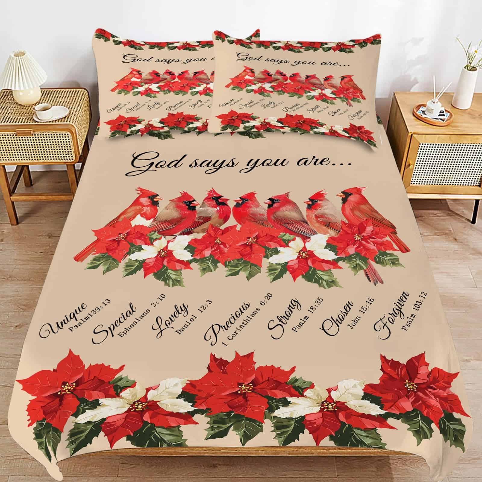 Set de Ropa de Cama Rojo con Temática de Cardenal Juego de