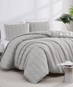 2. El juego de edredón de tamaño completo/reina es de 3 piezas e incluye un edredón de 92 pulgadas de ancho x 92 pulgadas de largo y dos fundas de almohada de 20 pulgadas de ancho x 26 pulgadas de largo. Las fundas tienen un cierre de sobre y esconden por completo tus almohadas. El patrón audaz pero simple de los hilos texturizados tejidos en la tela del juego de edredón crea un impacto dramático en tu dormitorio al instante. Con este único edredón, puedes introducir profundidad y textura en tu dormitorio.
