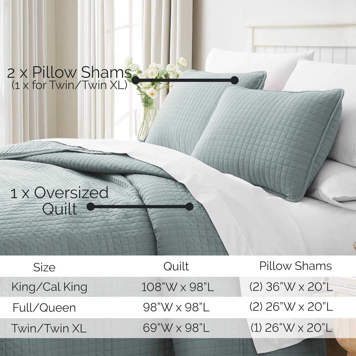 5. EL JUEGO DE COLCHAS COMPLETAS/REINA INCLUYE: 1 Colcha de 98″ de ancho x 98″ de largo; Dos fundas de almohada estándar de 20″ x 26″; La microfibra no se encoge asegura que estas colchas conserven su tamaño generoso, para una cobertura total en los lados y el pie de su cama completa o de reina.