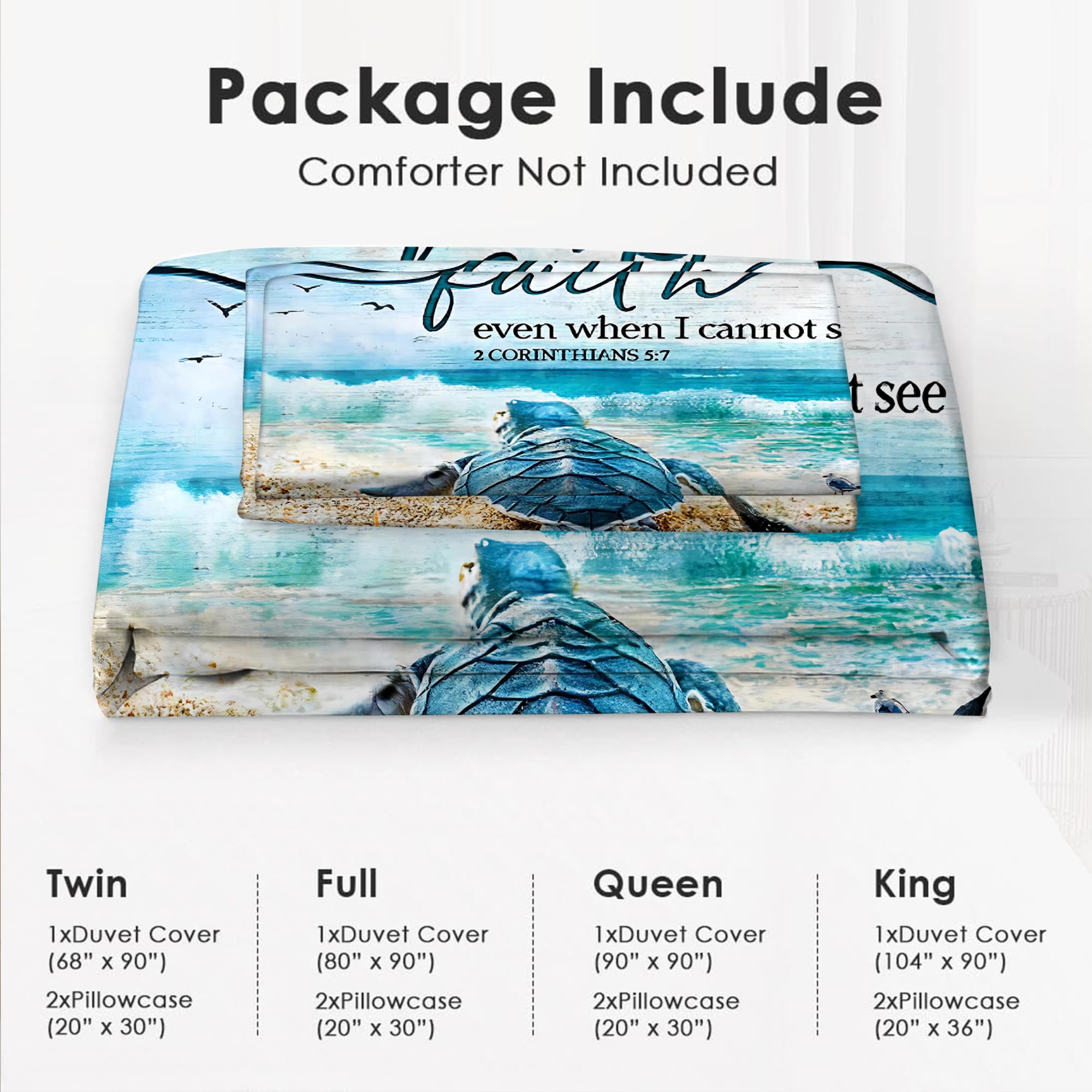 Tamaño Queen: 1 Funda de Edredón (90″ x 90″) y 2 Fundas de Almohada (20″ x 30″). No hay Edredón en el Set.