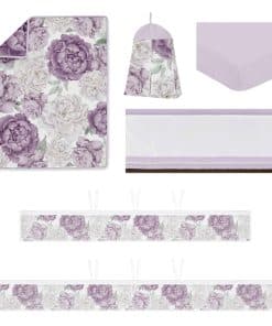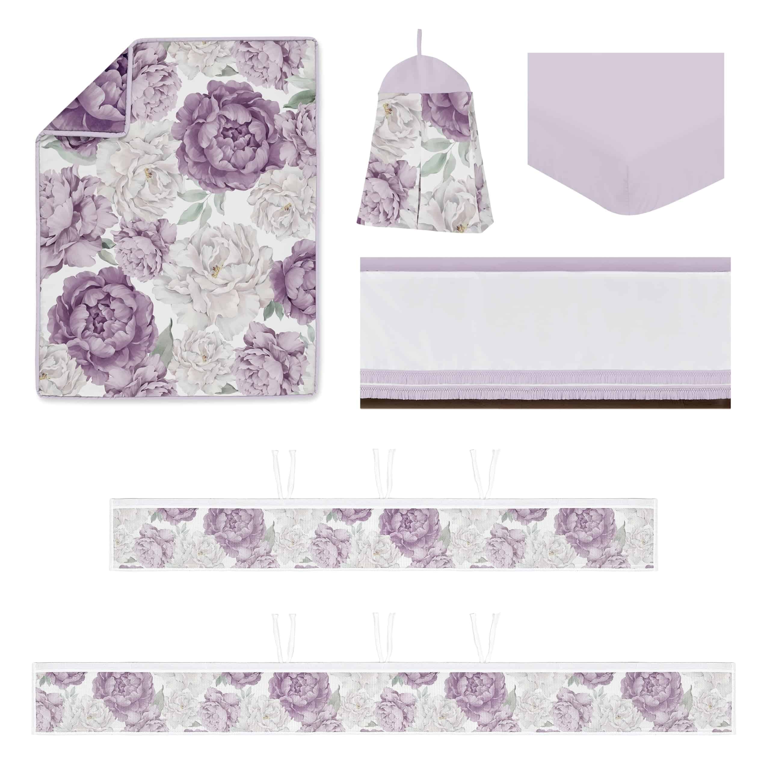 Este juego destaca un estampado floral chic boho en tonos lila, violeta, lavanda, marfil, crema, y verde salvia pastel, con detalles de borlas de macramé. El juego de ropa de cuna está fabricado en microfibra cepillada y es lavable a máquina. La malla transpirable para la cuna de bebé está hecha de 100% poliéster y es lavable a máquina. Lavar por separado. Lavar a máquina en ciclo delicado con agua tibia. Solo usar blanqueador sin cloro cuando sea necesario. Secar en ciclo suave.
