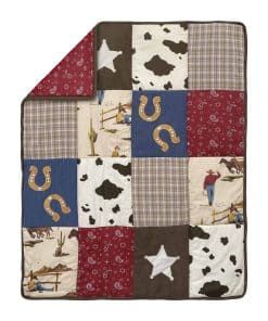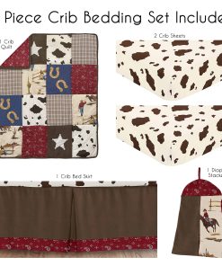 Los tejidos de microfibra cepillada y microsuede de este set muestran el perfecto tema del salvaje oeste en tonos marrón y beige para bebé niño, combinando exclusivos estampados de vaquero y caballos, cuadros, estampado de pañuelo rojo, estampado de vaca, denim y microsuede en una construcción de patchwork. Lavable a máquina. Secar a baja temperatura. Sweet Jojo Designs también ofrece accesorios a juego como decoración de pared, cestos, pantallas de lámparas, tratamientos para ventanas y más, se venden por separado.