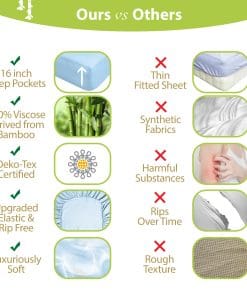 Renueva tu ropa de cama con el set de sábanas de lujo BAMPURE. Este juego incluye 6 piezas de sábanas tamaño King, hechas de 100% viscosa derivada de bambú para una experiencia de sueño suave y fresca. Estas sábanas de bambú son ideales para quienes tienden a dormir caliente, ya que brindan una sensación refrescante durante la noche. Con un bolsillo profundo que se adapta a colchones de hasta 16 pulgadas de grosor, estas sábanas aseguran un ajuste seguro y cómodo. Renueva tu dormitorio con el lujo y la calidad de las sábanas de la serie BAMPURE.