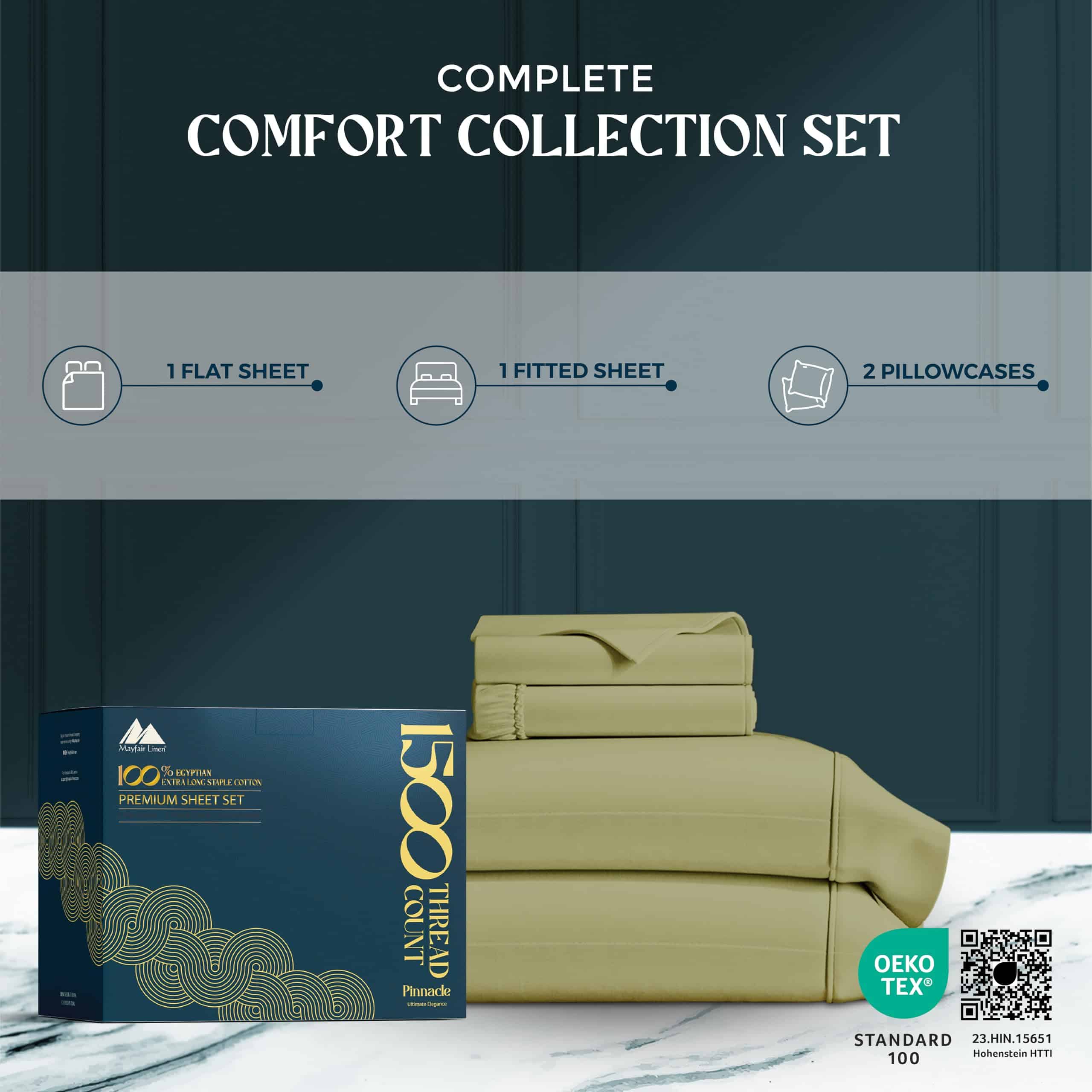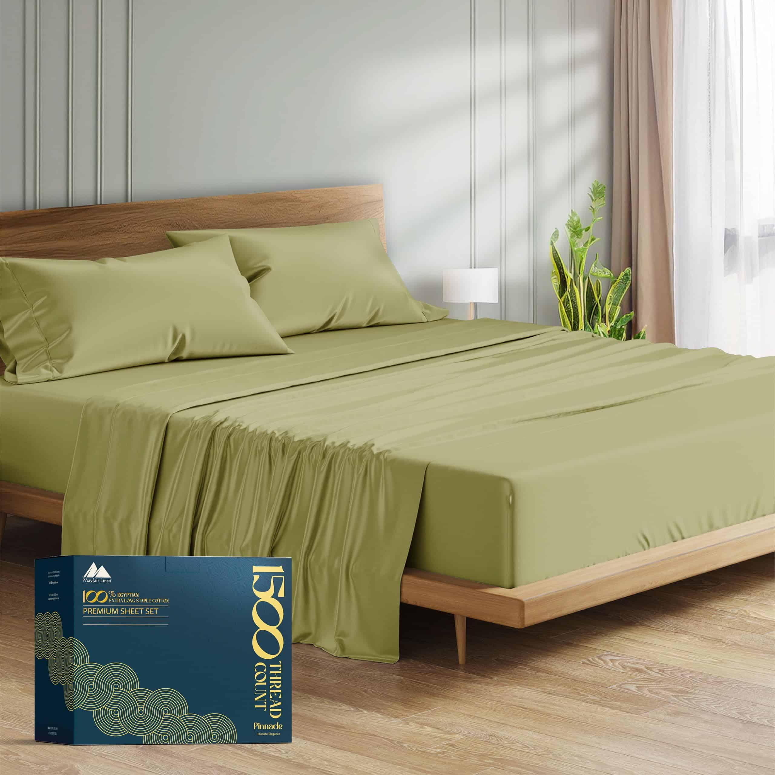 Includes a Complete 4-Piece Sheet Set: Mayfair Linen�s 1500 thread count Egyptian cotton sheets king size includes 1 Flat Sheet (102″ x 108″), 1 Fitted Sheet (78″ x 80″ + 16″), and 2 Pillowcases (21″ x 41″). The fitted sheet guarantees a taut fit on the mattress with extra deep pocket to accommodate all kinds of adjustable mattresses, and the elastic to secure the sheet to the mattress. Pillow case has envelope closures to tuck in the pillows inside.