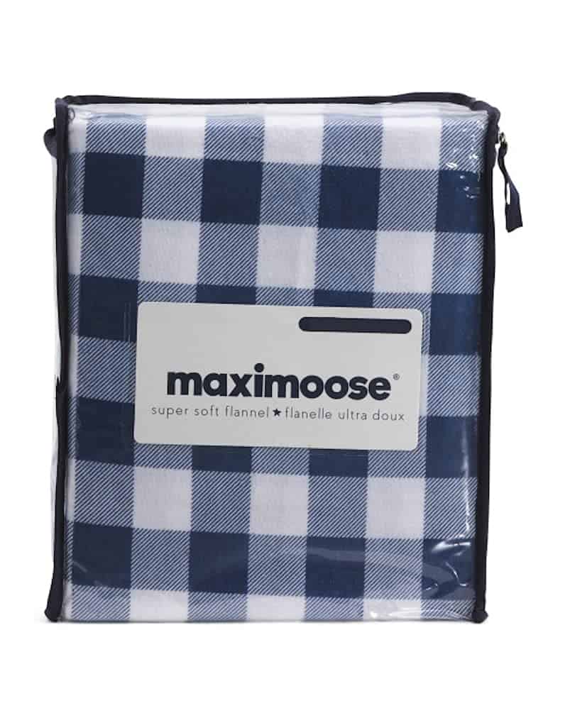 Set de sábanas Maximoose 100% algodón franela temática de invierno (Cuadros azules, Individual)