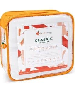 1. ¿QUÉ SE INCLUYE: EL JUEGO DE TAMAÑO KING INCLUYE 4 Piezas: Una Sábana Plana de 102″ x 105″, una Sábana Ajustable de 78″ x 80″ para colchones de hasta 22″ de grosor incluyendo colchones de espuma con memoria, con altura de almohada doble y personalizada, y dos Fundas de Almohada King de 20″ x 40″ con Cierres Europeos. 2. Las Originales PeachSkinSheets de Atlanta, Georgia | Cada juego de sábanas y funda nórdica viene con nuestro Emblema Naranja y Cremallera Durazno. 3. Tela del Siglo XXI SMART y Gestión de la Humedad para Confort Todo el Año | Los Durmientes Calurosos se Mantienen más Secos y Frescos, los Durmientes Fríos se Mantienen Acogedores | Nuestras sábanas no cambiarán su química corporal ni sus niveles hormonales si normalmente transpira, pero ayudarán a controlar la humedad a través de la evacuación de la humedad, el flujo de aire y su capacidad para secarse ultra rápido. 4. TELA DE RENDIMIENTO TRANSPIRABLE Hecho de un Material de Poli-Fibra Ligero de Grado Atlético Diseñado para Máximo Flujo de Aire y Evacuación de la Humedad | Un peso de 90 GSM y acabado doble cepillado PeachSkin proporciona un increíble nivel de suavidad de 1500 hilos por pulgada que se vuelve aún más suave con cada lavado |. 5. AJUSTE Y ACABADO SUPERIOR Elástico Ancho y Grueso en todas las sábanas ajustables | Paneles de extensión en las sábanas ajustables para colchones gruesos | Etiquetas de colocación (arriba, abajo, lado, lado en las sábanas ajustables) | Cierre con sobre en las fundas de almohada | Dobladillos terminados a mano en las Sábanas Planas y Fundas de Almohada