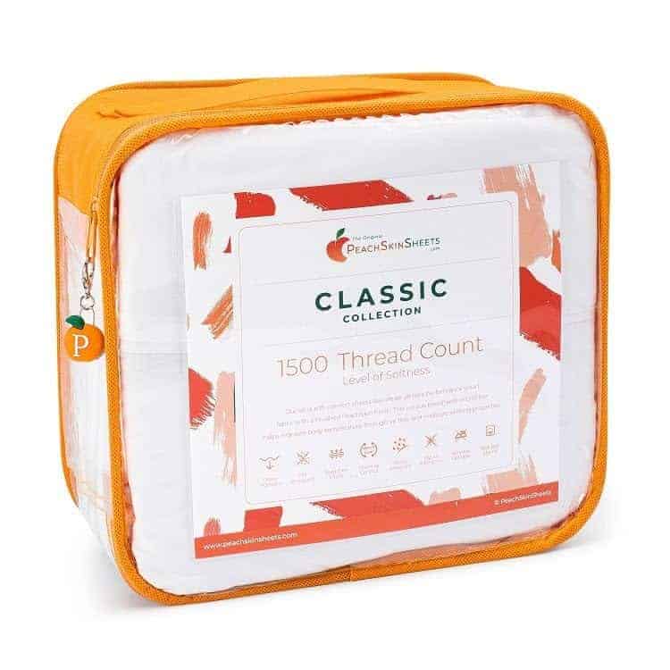 Este Original Juego de Sábanas Suaves PeachSkinSheets de 1500tc de Atlanta, Georgia, presenta nuestro emblemático tirador de cremallera durazno. No solo proporcionan un nivel de suavidad comparable a 1500 hilos por pulgada, sino que son de grado atlético, con una tela inteligente del Siglo XXI transpirable. Este material permite el flujo de aire y está diseñado para evacuar la humedad mientras regula las temperaturas corporales frescas y cálidas. Nuestras sábanas no cambiarán tu química corporal, ¡pero SÍ te ayudarán a gestionar mejor la transpiración para mantenerte más fresco y más seco! Los durmientes calurosos se mantienen frescos y los durmientes fríos se mantienen acogedores, por lo que son las sábanas perfectas para todo el año. BENEFICIOS DE LA TELA INTELIGENTE Grado atlético y transpirable para los durmientes calurosos Evacuación de humedad para mantener más secos a los durmientes transpirantes Control térmico que funciona con tu temperatura corporal y de la habitación para un confort durante todo el año Acabado (siempre lavar/secar las sábanas por separado y nunca con toallas, jeans, etc.) Se seca en 15-20 minutos a temperatura media alta y sale sin arrugas Anti-Enganches y resistente a callosidades y mascotas El pelo de mascotas no se teje a través de la tela Superficie Antideslizante significa que no se desliza ni estira Ideal para piel sensible Los colores no se desvanecen y los blancos no se ponen grises Ultr… (truncated)