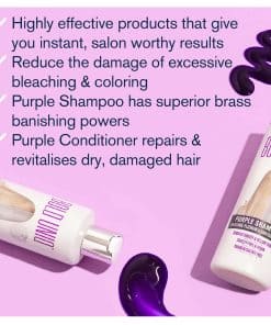 Con un poder púrpura excepcional, este set de shampoo y acondicionador hace frente al tono cobrizo, eliminando cualquier tono amarillo de tu cabello. Obtendrás un color y acabado fresco y digno de salón desde la comodidad de tu hogar. Puede usarse de forma consistente para mantener un look plateado elegante, o cada pocas lavadas para revitalizar el color natural que amas. Este acondicionador hidratante hace maravillas en el cabello rubio. Su naturaleza nutritiva lo convierte en el remedio perfecto para la potencia de nuestro shampoo. Usando una textura rica y lujosa, este acondicionador completará tu look, revelando un cabello de aspecto saludable, libre de frizz y sedoso al tacto. Nuestros pigmentos púrpuras hacen su mejor trabajo en los tonos cobrizos, el amarillo se neutraliza con el poder del púrpura, revelando resultados limpios y perfeccionados. ¡Mantener el look que amas nunca ha sido más fácil! Este dúo equilibrado ha sido creado para mantener tu cabello con un aspecto fresco y fabuloso, ¡y la mejor noticia es que BOLD UNIQ se esfuerza por brindarte opciones de belleza sostenibles! Estamos orgullosos de ser libres de parabenos y sulfatos. Aprueba la crueldad de PETA y 100% vegano. Y eso no es todo, nuestras botellas y frascos están hechos de plástico reciclado postconsumo. Comprometidos con un cabello sano y un ambiente sano.