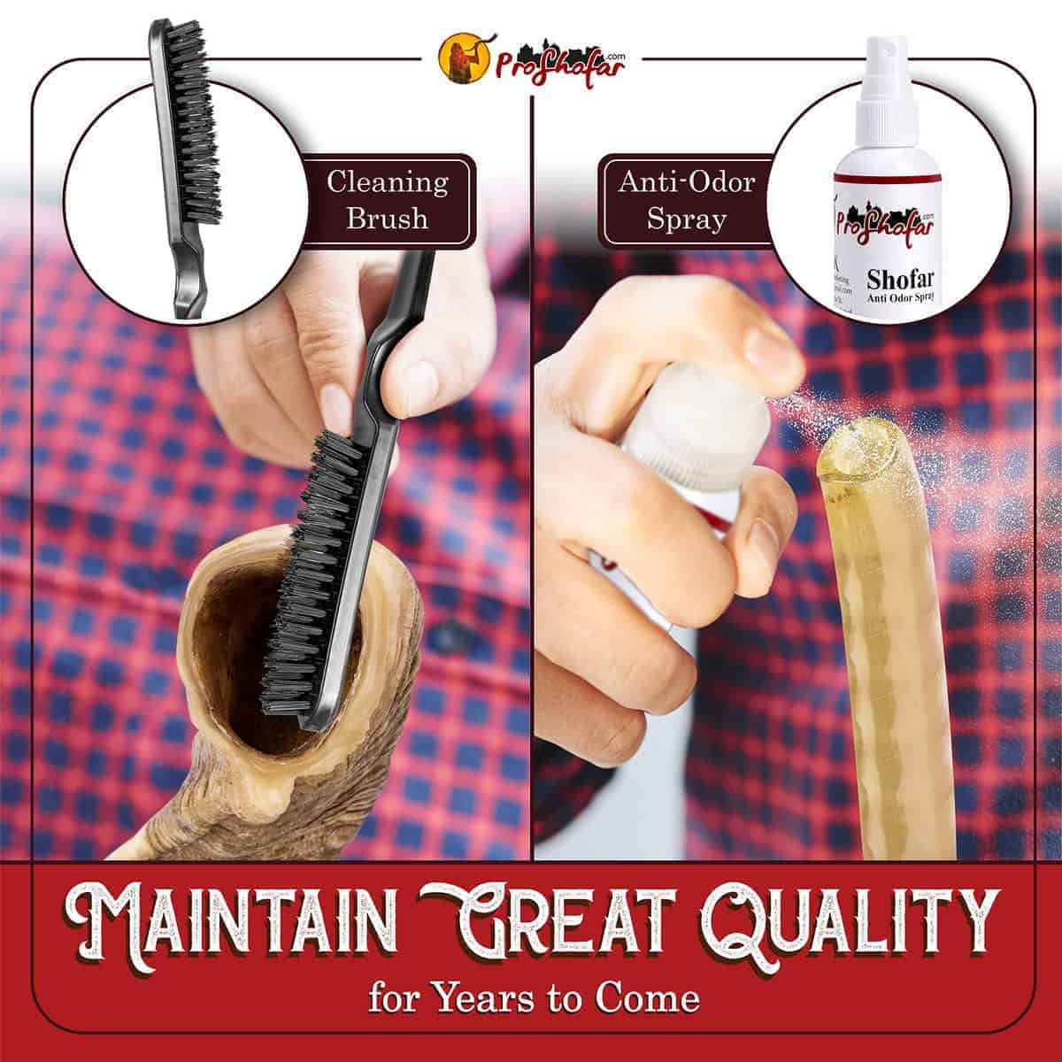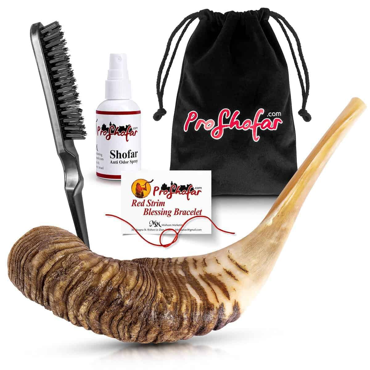 ProShofar presenta este increíble Set de Shofar que incluye una bolsa de transporte de terciopelo, spray neutralizador de olores, cepillo de limpieza, guía y pulsera roja de Tierra Santa. El Shofar es un cuerno de carnero semi pulido, fabricado con materiales de la más alta calidad. Con una longitud de 12″-14″, este Shofar no se mide como una línea recta de un extremo a otro, sino a lo largo de la curva. Es importante mencionar que ningún animal fue dañado en el proceso de elaboración de este instrumento, garantizando un producto 100% cruelty-free. Ten en cuenta que el color y la forma del Shofar pueden variar ligeramente de lo que se muestra en las imágenes.