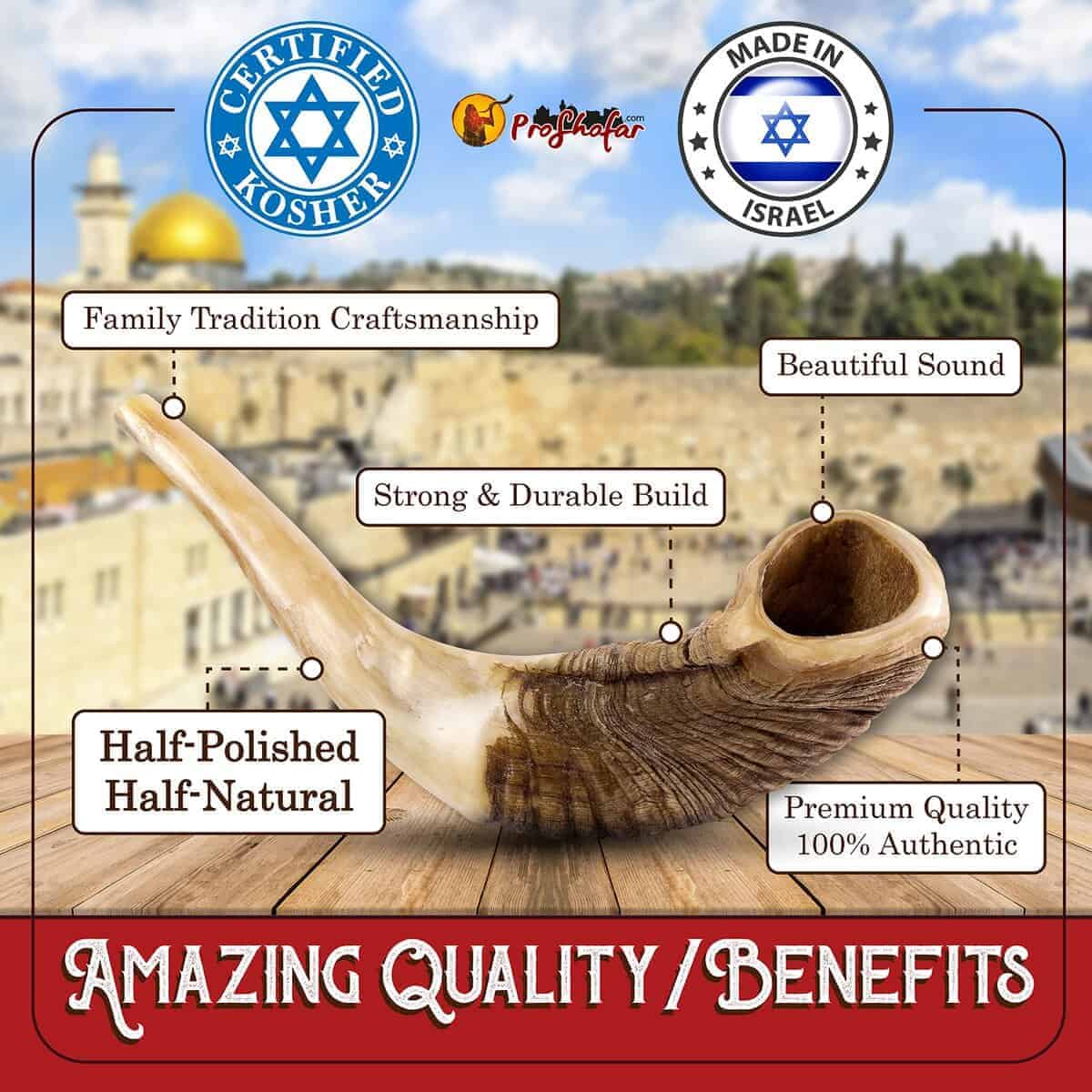 3. El cuerno ProShofar de calidad premium es 100% auténtico, natural y kosher. Hecho en Tierra Santa por los mejores artesanos del mercado.