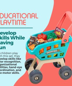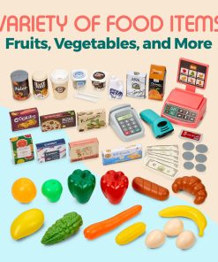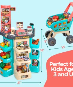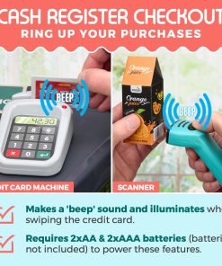 CARACTERÍSTICAS PRINCIPALES: Set Completo – Juego de Tienda de Comestibles de 47 Piezas Para Niños a partir de 3 años Tamaño del Mostrador de Caja: 37 x 31.5 x 20 pulgadas Tamaño del Carrito de la Compra: 16 x 16.5 x 9.5 pulgadas Requiere 2 pilas AA y 2 pilas AAA para funcionar (no incluidas)