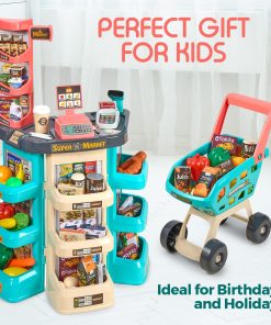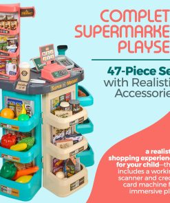 El Set de Supermercado para Niños con Escáner ofrecerá un montón de diversión de compras para niños y niñas. El set de juguetes incluye estantes de múltiples capas donde pueden exhibir sus artículos, una balanza, un escáner y un carrito. Viene también con una variedad de alimentos de juguete. Los niños disfrutarán jugando a llenar los estantes, cobrar compras o hacer la compra ellos mismos.