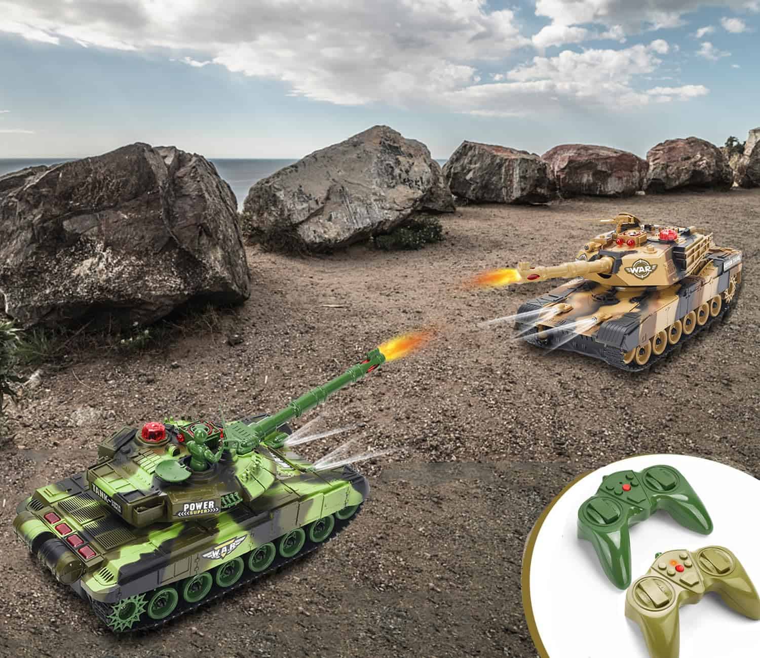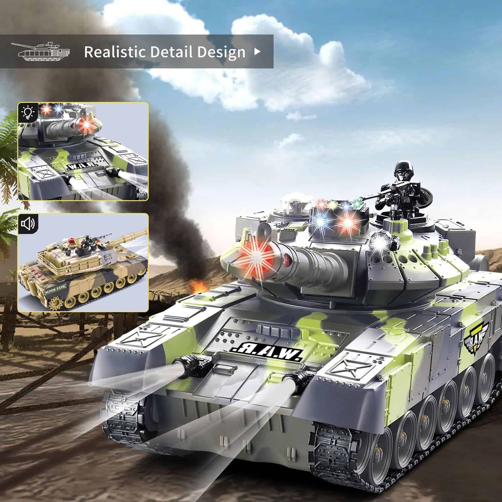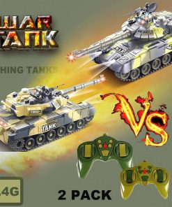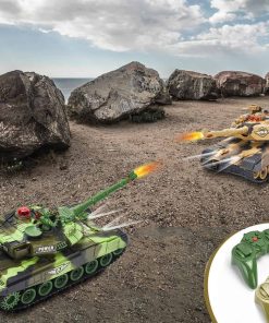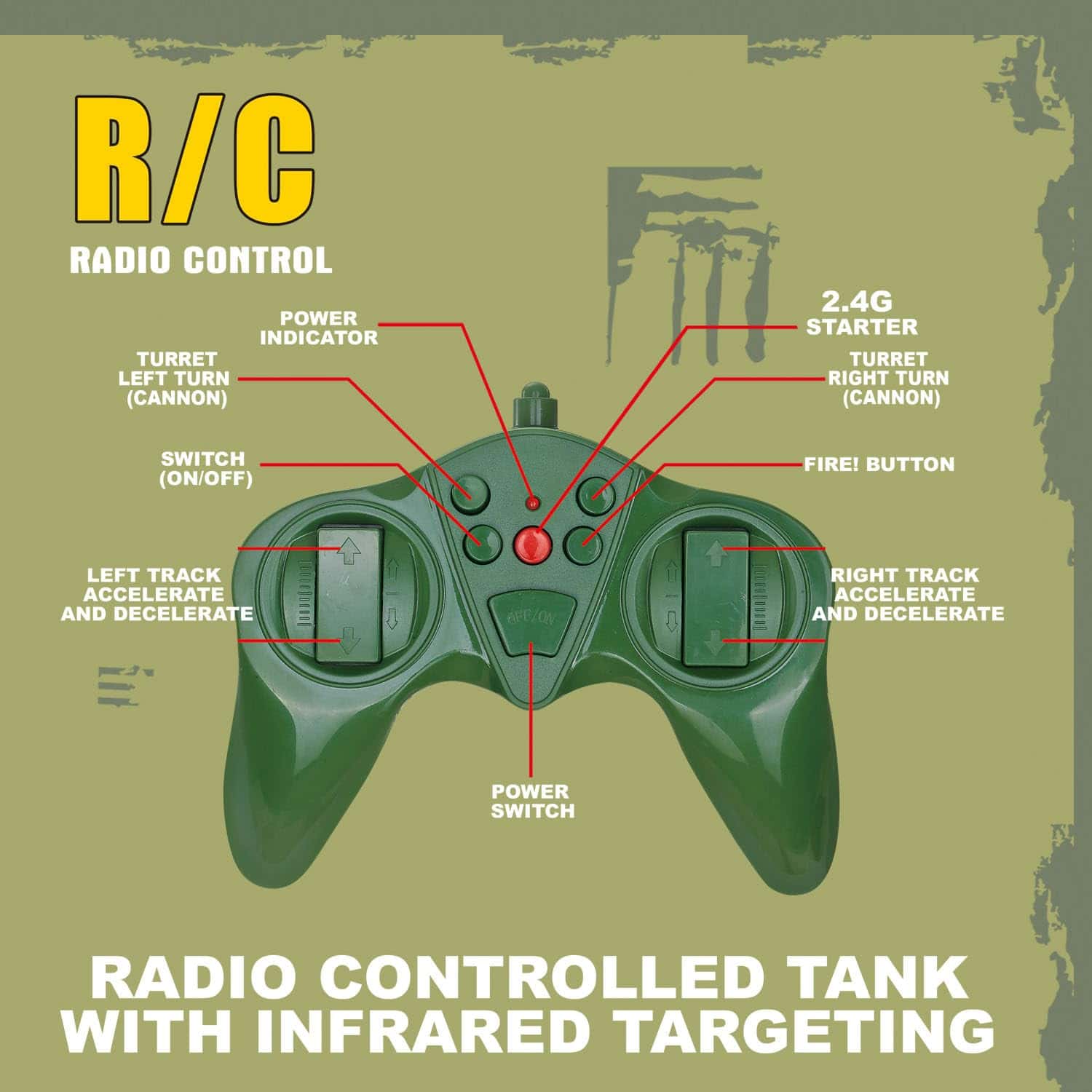 ¡Atrévete a participar en un emocionante juego de batalla con tanques realistas de control remoto de Haktoys! Este set incluye 2 tanques (uno con camuflaje de bosque y otro con camuflaje del desierto) que operan en diferentes frecuencias para que puedas disfrutar de una batalla sin interferencias. Los tanques se golpean entre sí utilizando frecuencia infrarroja, lo que garantiza una experiencia de juego emocionante. La distancia de control del tanque es de hasta 75 pies, mientras que la distancia de combate es de hasta 30 pies, lo que te permitirá maniobrar estratégicamente para derrotar a tu oponente. Cada tanque es completamente funcional, permitiéndote moverlo hacia adelante, hacia atrás, girarlo a la izquierda y a la derecha. Además, la torreta puede moverse lateralmente y el cañón puede apuntar hacia arriba y hacia abajo para una precisión óptima. Con 4 indicadores LED, podrás hacer un seguimiento de las 4 vidas de tu tanque y saber cuándo es el momento de recargar o reorganizar tu estrategia. Estos tanques están construidos con materiales de alta calidad y certificados como seguros, garantizando horas de diversión segura para niños y adultos por igual. Hazte con este set de tanques de batalla de Haktoys y prepárate para una acción sin fin. ¡Listos, apunten, fuego!