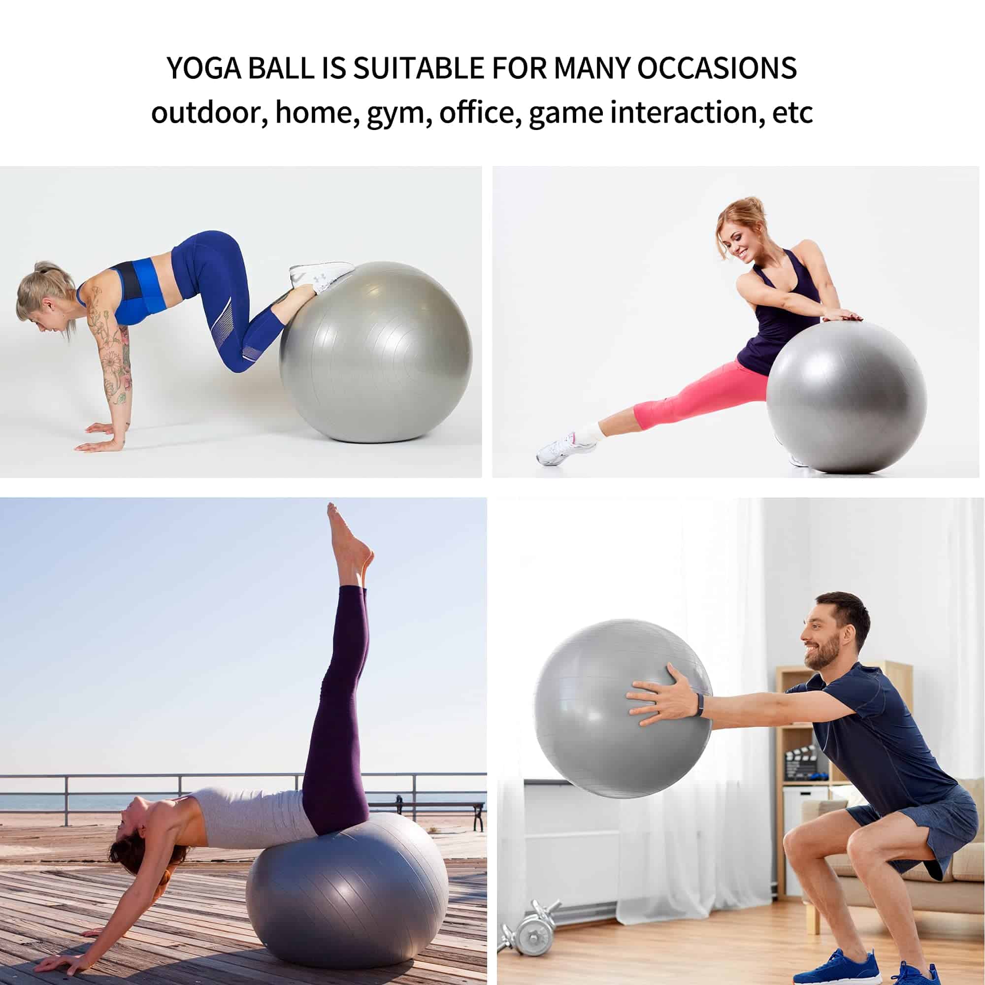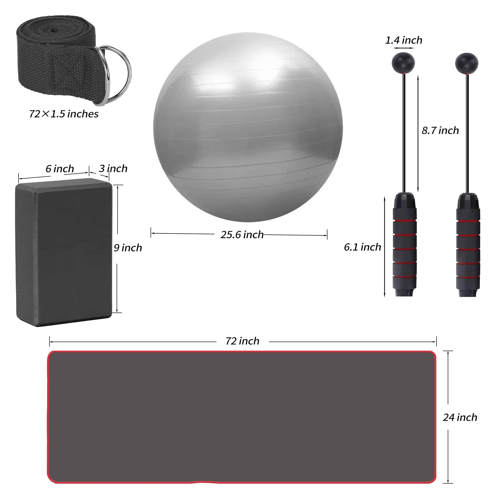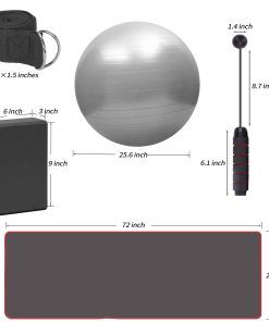 2. TAPETE DE RENDIMIENTO PERFECTO: Actualiza el tapete de yoga envuelto, 72″L x 24″W es más espacioso, antideslizante para prevenir lesiones, tapete de yoga Premium NBR de 0.4 pulgadas de espesor amortigua cómodamente la columna vertebral, caderas, rodillas y codos en pisos duros, rebote rápido para reducir la fuerza de impacto. El tapete de yoga extra grueso protege las articulaciones sin comprometer el soporte o la estabilidad. Es el tapete de yoga perfecto para principiantes. 3. 2 BLOQUES DE YOGA CON CORREA DE ASISTENCIA: Dos bloques de espuma duraderos (9 x 6 x 3) para una correcta posición y soporte. El bloque de yoga está hecho de material EVA de protección del medio ambiente, cada uno pesa 0.44 lb, dureza moderada, mayor densidad, mejor calidad, más estable y seguro. Los bloques de yoga con correa son muy adecuados para que los principiantes mejoren lentamente la coordinación y estabilidad del cuerpo y eviten lesiones. 4. BOLA DE YOGA A PRUEBA DE EXPLOSIÓN: La bola de yoga de 65 cm de diámetro (25.6 pulgadas) está diseñada para personas de 170-185 cm (5.6-6.1 pies) de altura para hombres o mujeres, estira los límites de tu estado físico integrando el ejercicio de estabilidad en tu rutina de entrenamiento o rehabilitación y desarrolla los músculos centrales para la prevención de caídas abdominales. La pelota de yoga también es un juguete interactivo para ti y tus hijos. Es divertido mantenerse en forma. 5. CUERDA PARA SALTAR SIN CUERDA: El movimiento de saltar sin cuerda te permite estar a la vanguardia de la moda. El diseño de doble rodamiento de la cuerda para saltar sin cuerda, rápido y sin enredos. No tendrás que preocuparte por tropezarte con la cuerda durante el ejercicio, y podrás mantenerte alejado del dolor de enredarte en cuerdas durante el ejercicio.