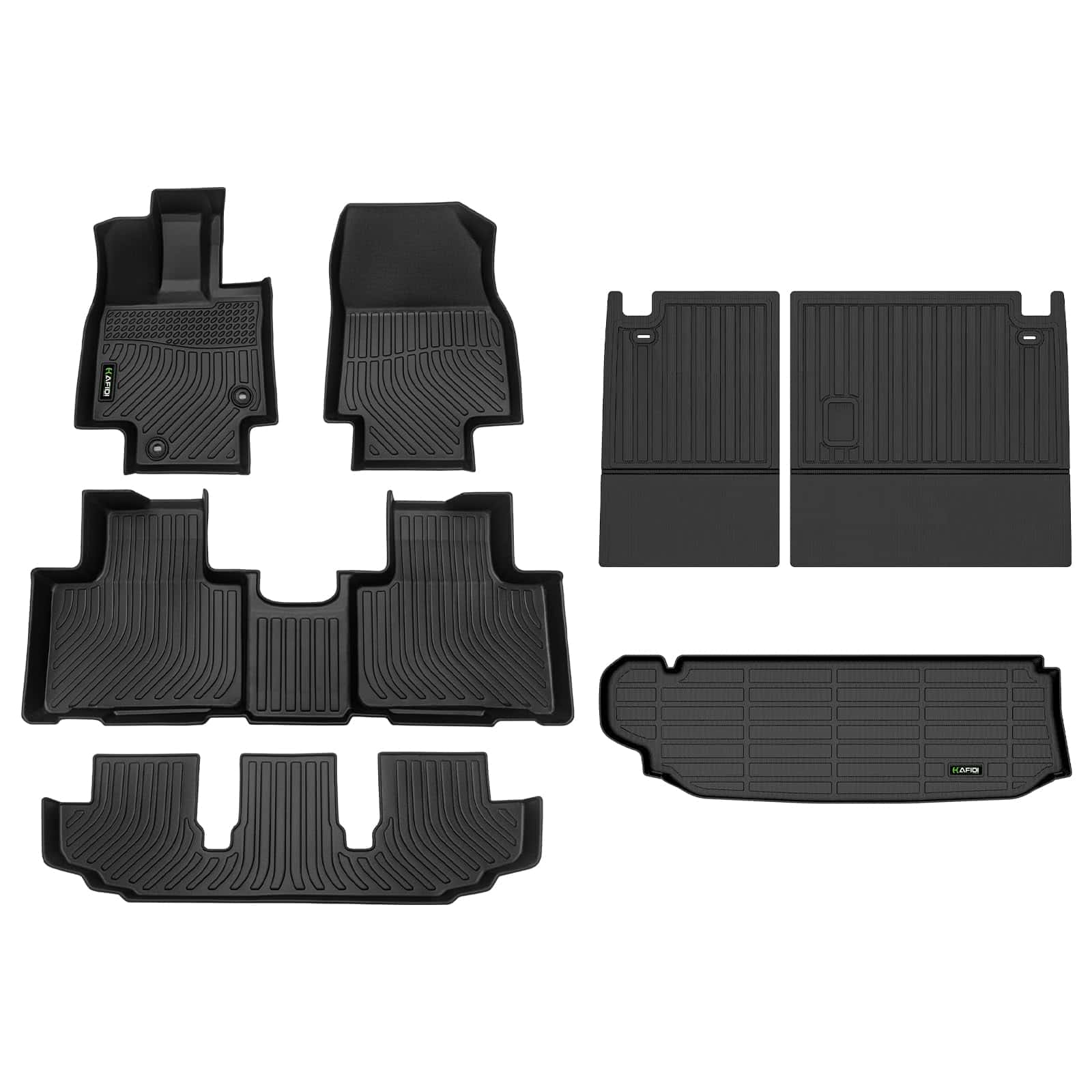 Juego completo de accesorios para tapetes para piso, forro para maletero y forro para respaldo de asiento HAFIDI a medida para Toyota Highlander (no híbrido/Grand Highlander) 2020-2025. Este conjunto incluye tapetes para las filas delanteras, traseras y tercera fila, junto con un forro para el maletero y un forro para el respaldo de los asientos. Los tapetes para piso y el forro para maletero están fabricados con material TPE de alta calidad que garantiza una protección duradera para el piso del vehículo. Los canales ergonómicamente diseñados y los bordes elevados ayudan a atrapar líquidos, arena, nieve, etc., manteniendo el interior del automóvil limpio y protegido. Además, estos accesorios son fáciles de limpiar, simplemente puede limpiarlos con un paño húmedo o enjuagarlos con agua. Proteja su Toyota Highlander 2024 2025 (no híbrido/Grand Highlander) con este set de accesorios HAFIDI que brinda una protección completa y duradera contra todo tipo de climas y situaciones.