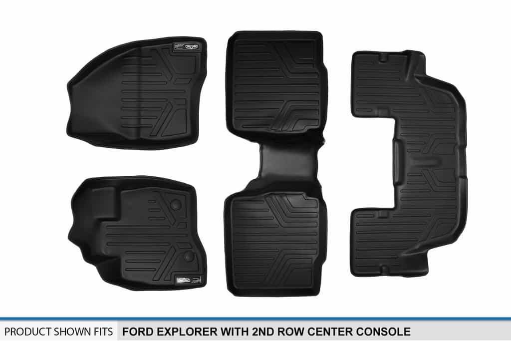 1. Solo se ajusta a modelos con consola central de la 2da fila. Protección de la alfombra del vehículo con material moldeado de baja densidad que proporciona cobertura de la tabla de piso.
