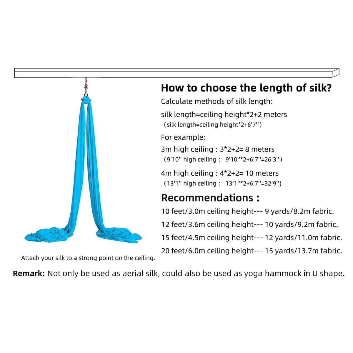 1. Calidad Premium: Hecho con materiales de alta calidad para garantizar durabilidad y seguridad durante las actuaciones de tela aérea. Tela aérea de bajo estiramiento, 9 yardas de longitud y 108 pulgadas de ancho, fácil de lavar y secar.