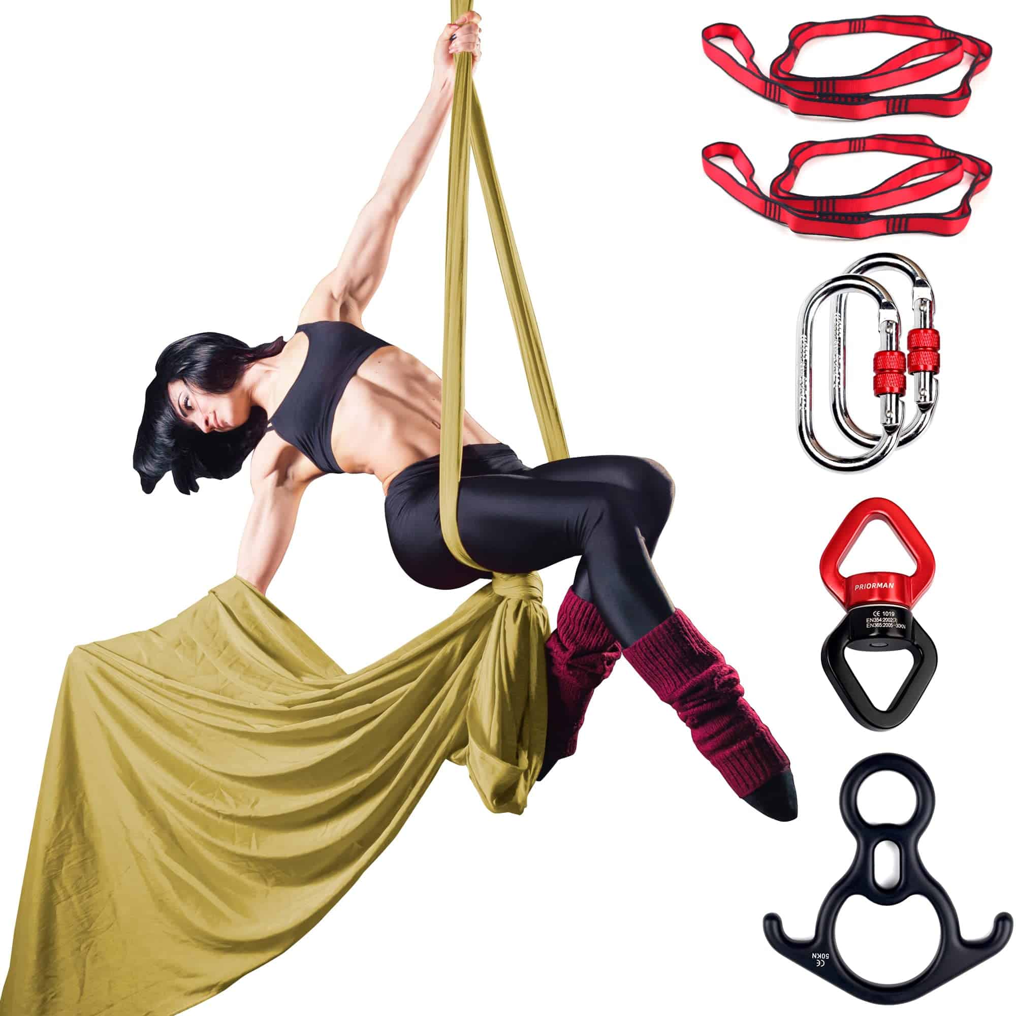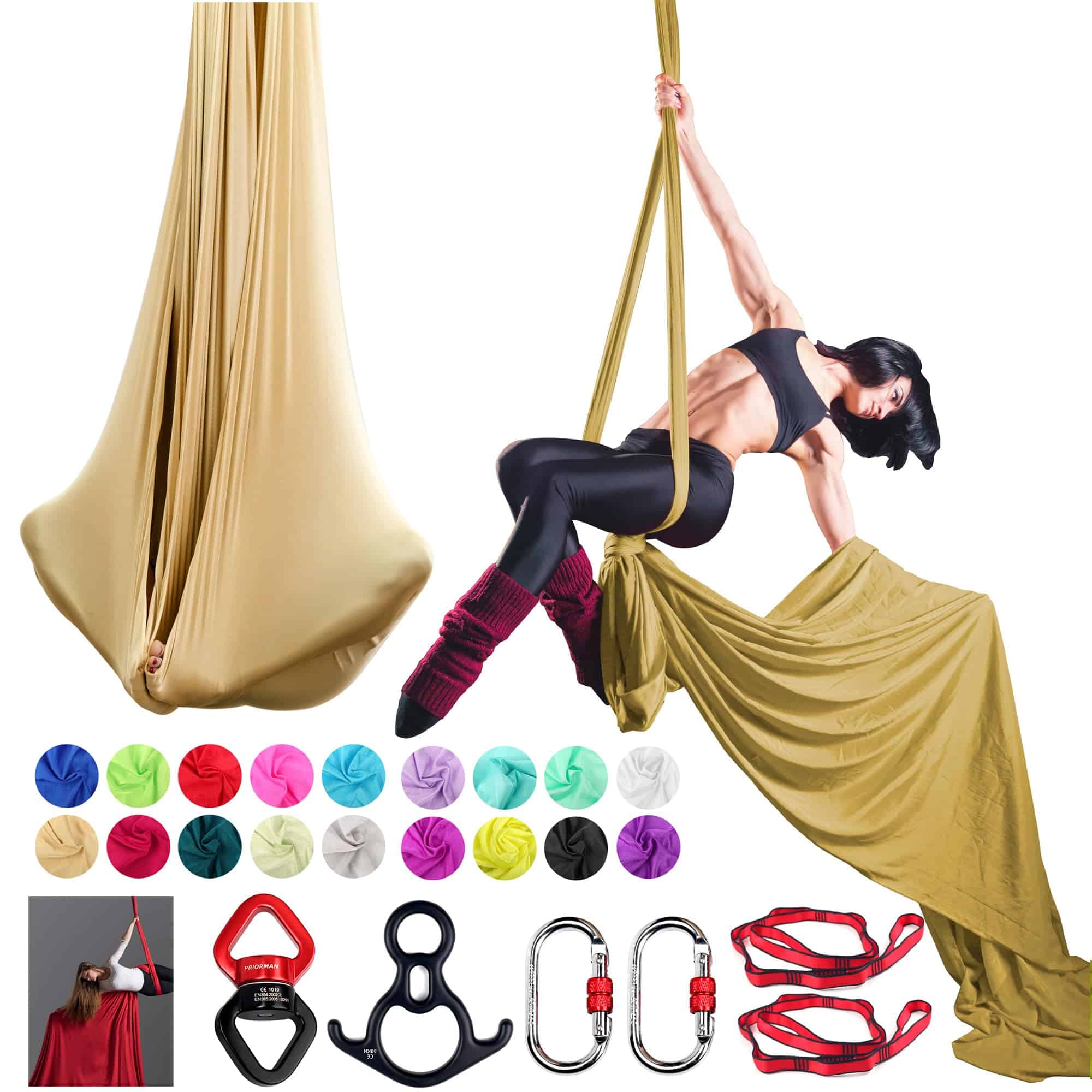 Set de Telas Aéreas PRIORMAN, Hamaca de Yoga -Gold